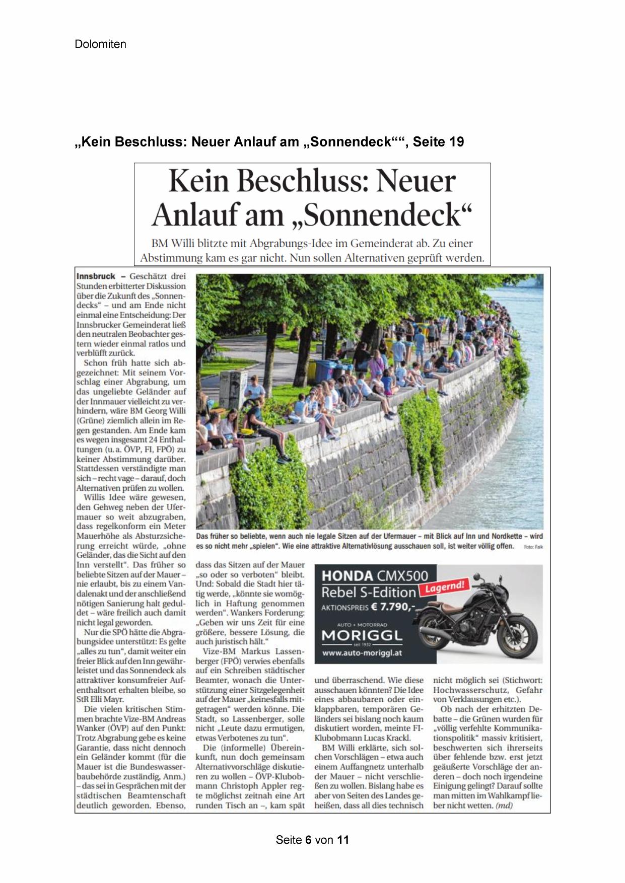 „Kein Beschluss: Neuer Anlauf am „Sonnendeck‘“““, Seite 19