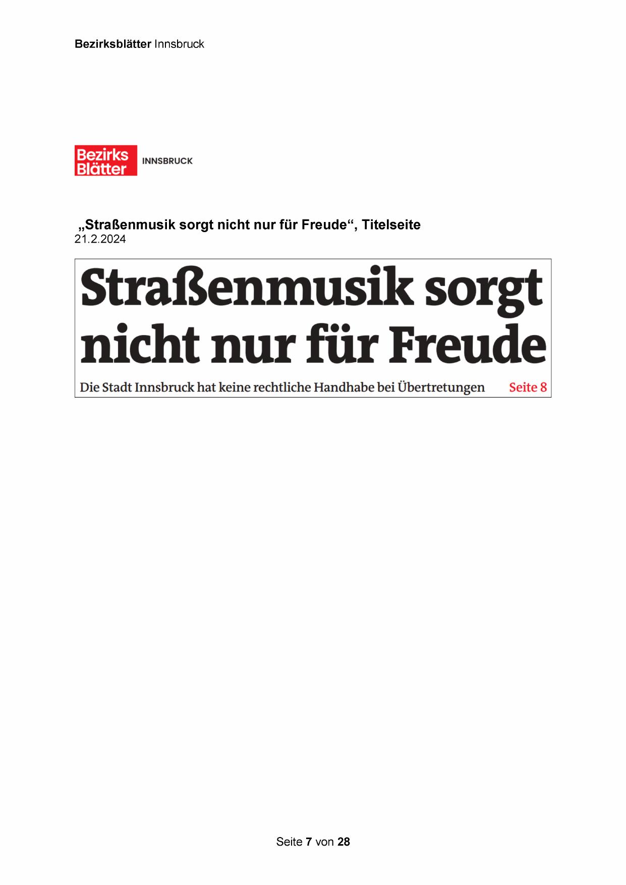„Straßenmusik sorgt nicht nur für Freude“, Titelseite