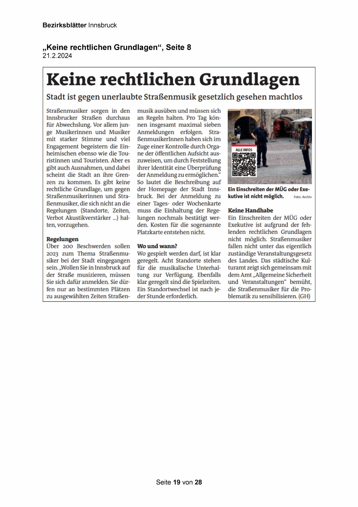 2023 zum Thema Straßenmusiker bei der Stadt eingegangen
