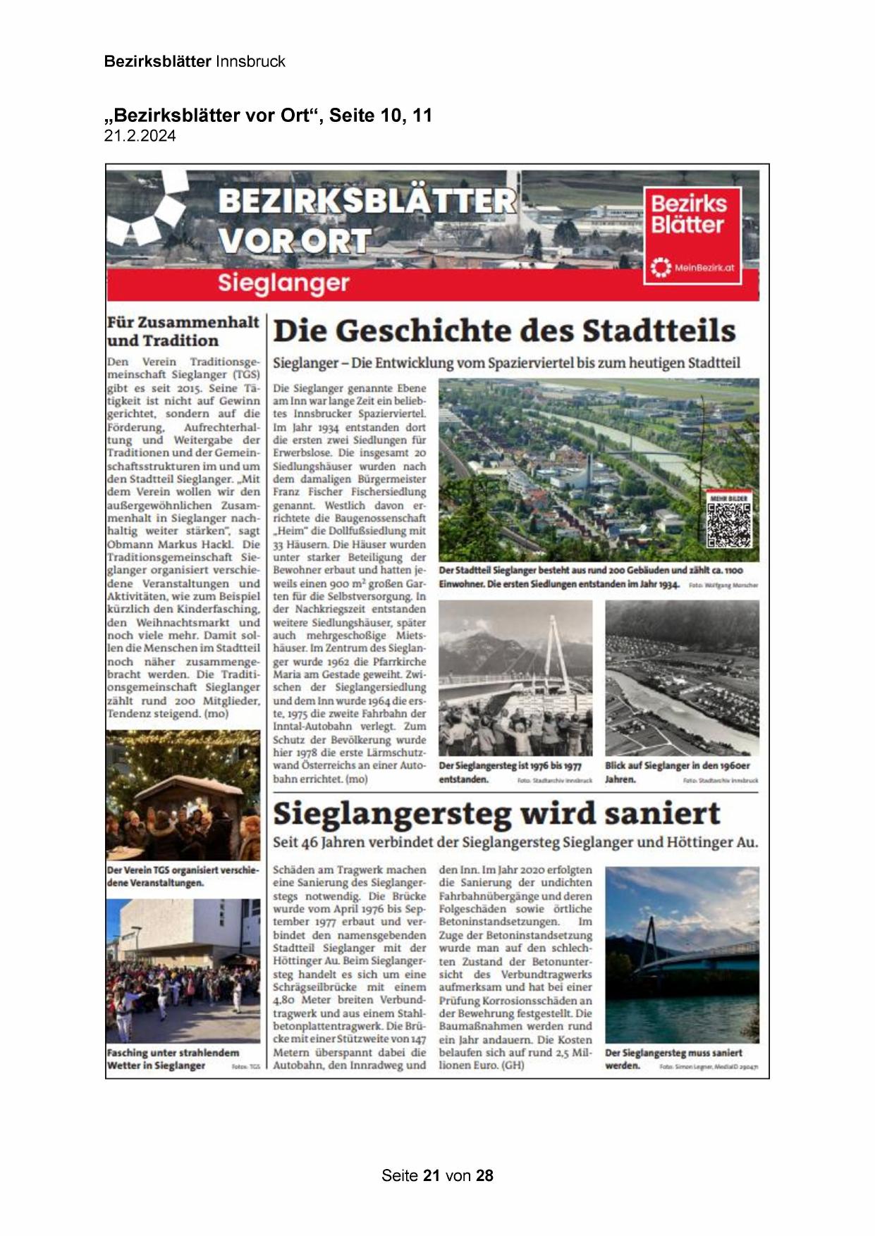 noch näher zusammengebracht werden. Die Traditionsgemeinschaft Sieglanger