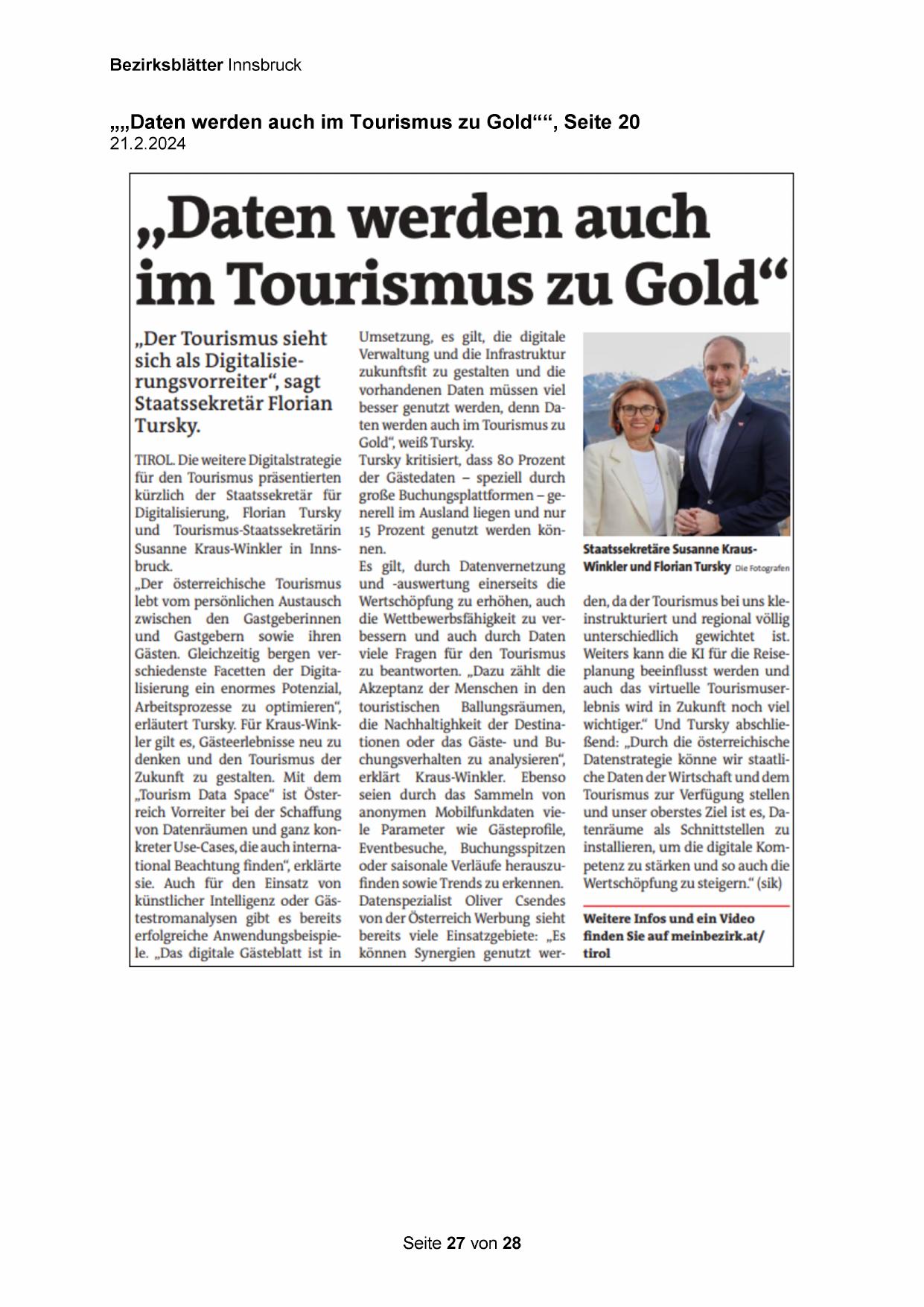„„Daten werden auch im Tourismus zu Gold““““, Seite 20