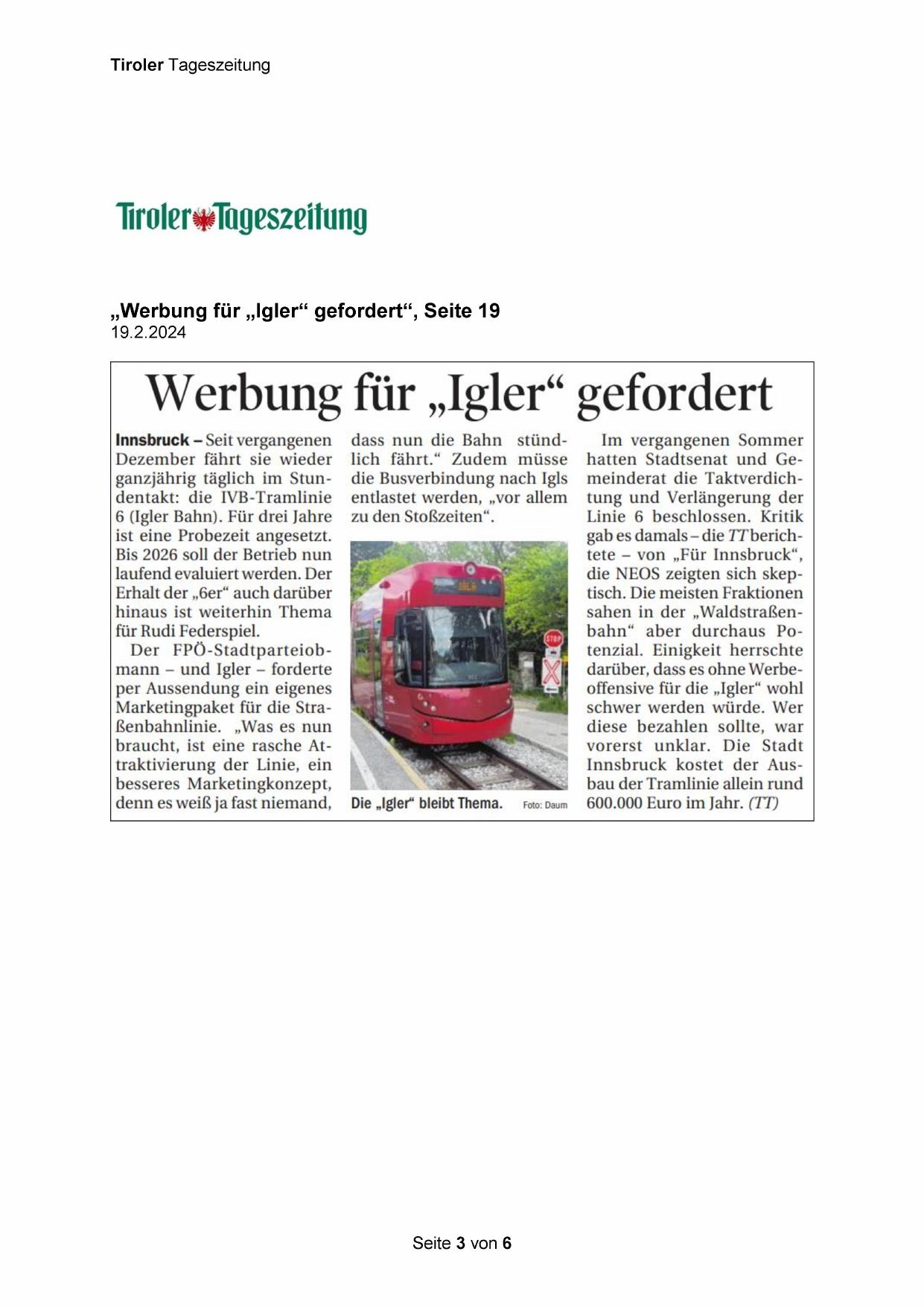 gab es damals - die TT berichtete — von „Für Innsbruck“,