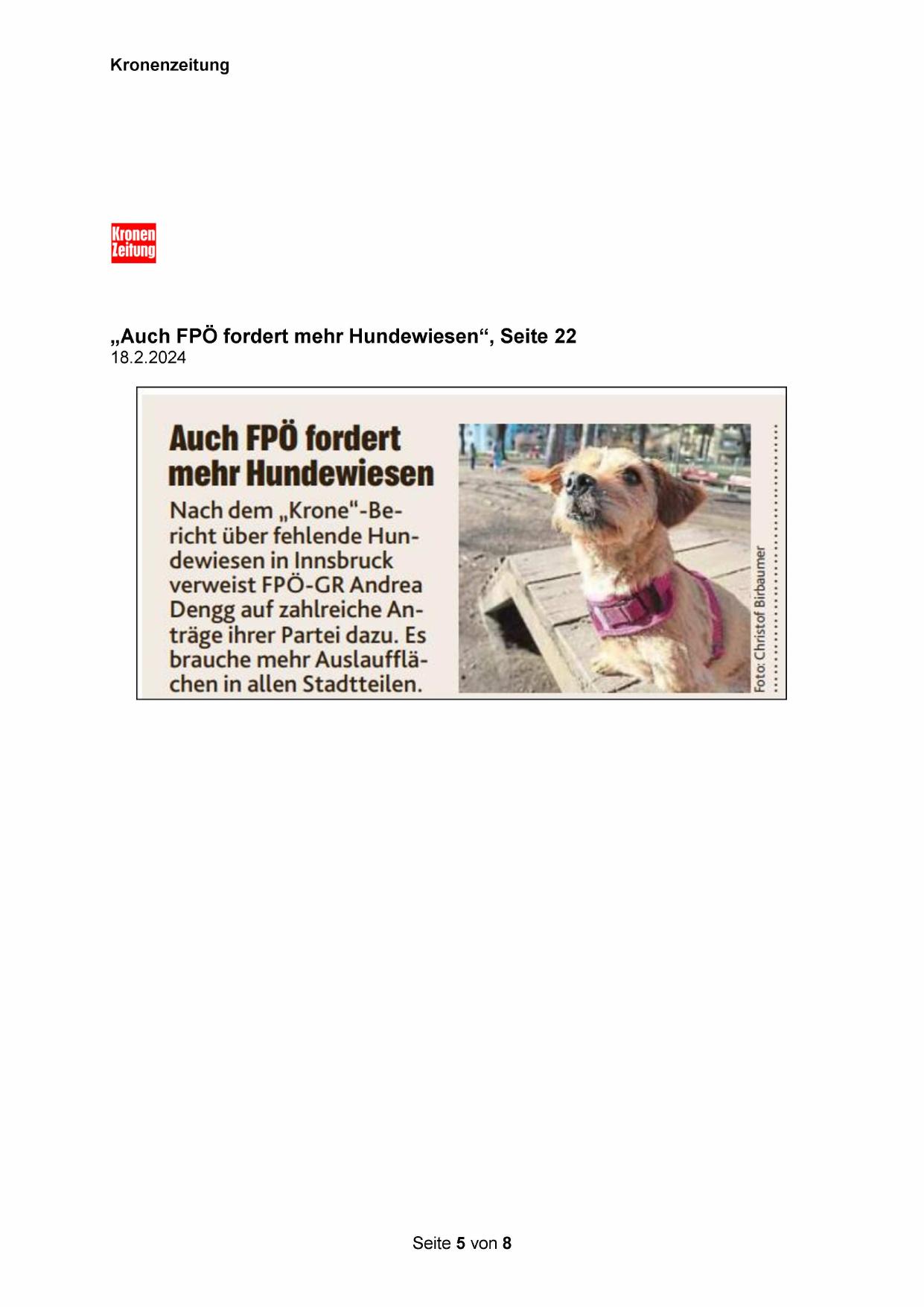 „Auch FPÖ fordert mehr Hundewiesen“, Seite 22