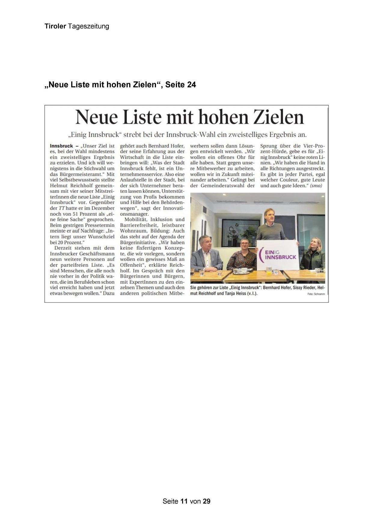 Sprung über die Vier-Prozent-Hürde, gebe es für „Einig Innsbruck“ keine roten Linien. „Wir haben die Hand in