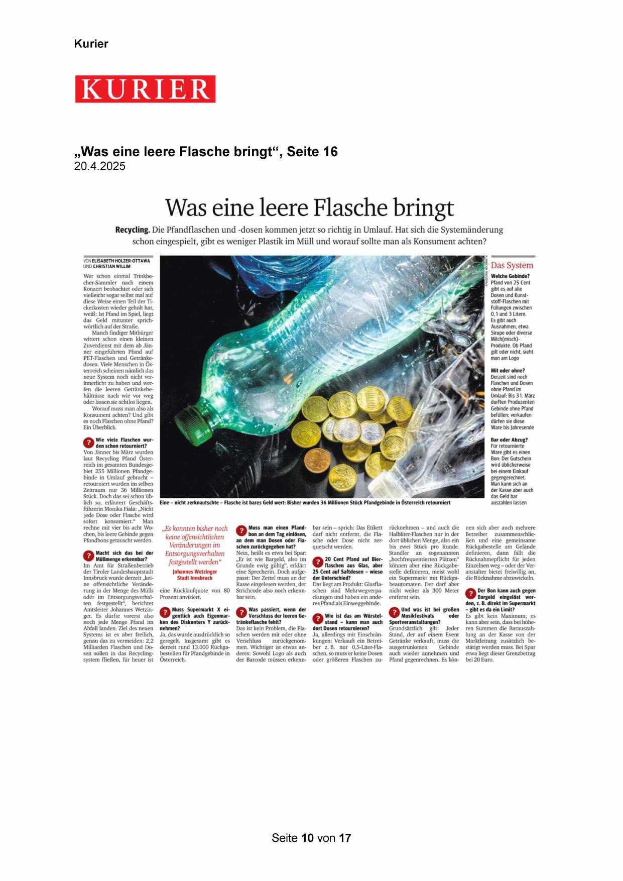 laut Recycling Pfand Österreich im gesamten Bundesgebiet 255 Millionen Pfandgebinde in Umlauf gebracht —