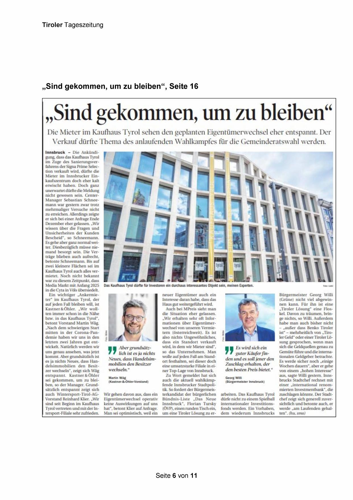 Innsbruck —- Die Ankündigung, dass das Kaufhaus Tyrol