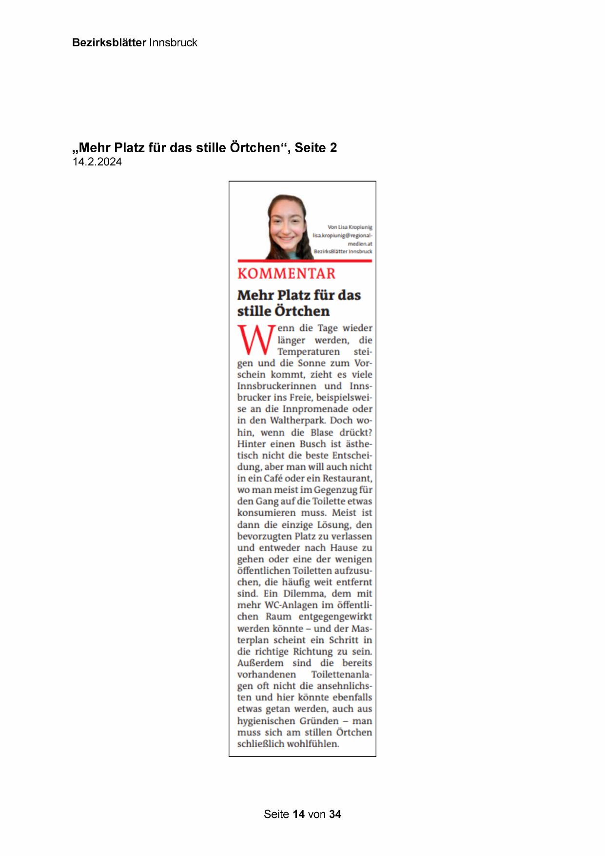 mehr WC-Anlagen im öffentlichen Raum entgegengewirkt