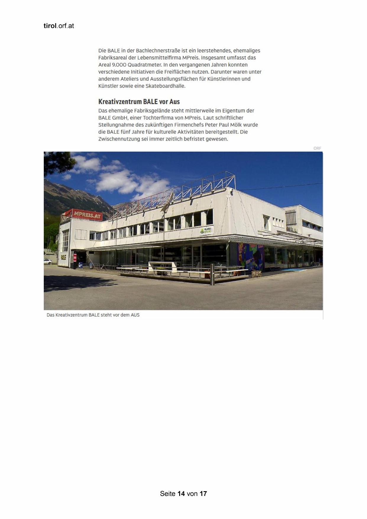 BALE GmbH, einer Tochterfirma von MPreis. Laut schriftlicher