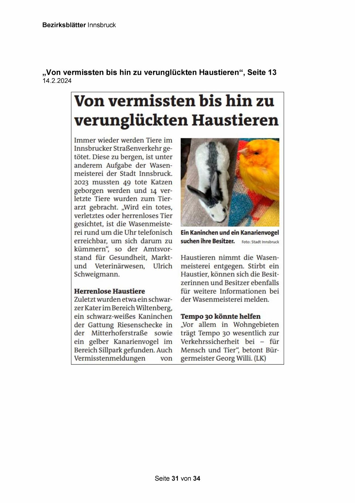 „Von vermissten bis hin zu verunglückten Haustieren“, Seite 13