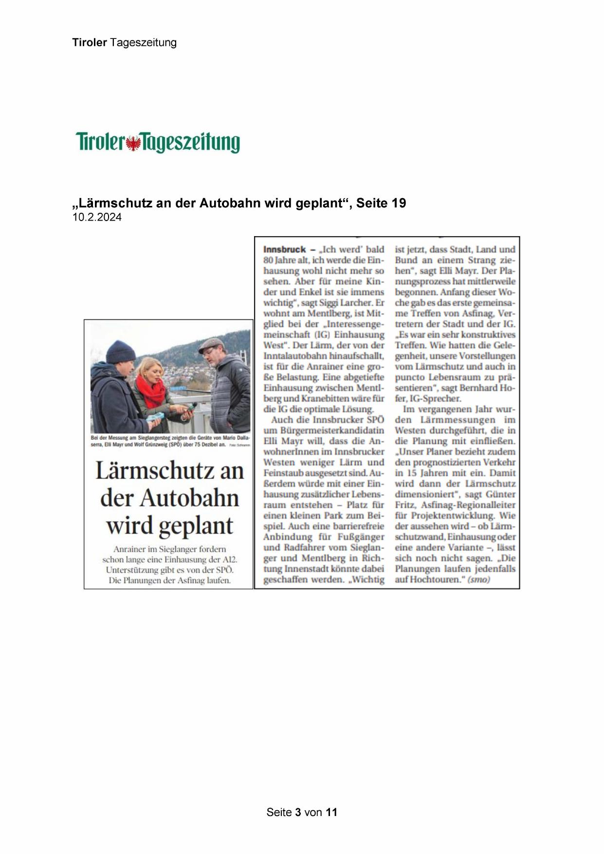 „Lärmschutz an der Autobahn wird geplant“, Seite 19