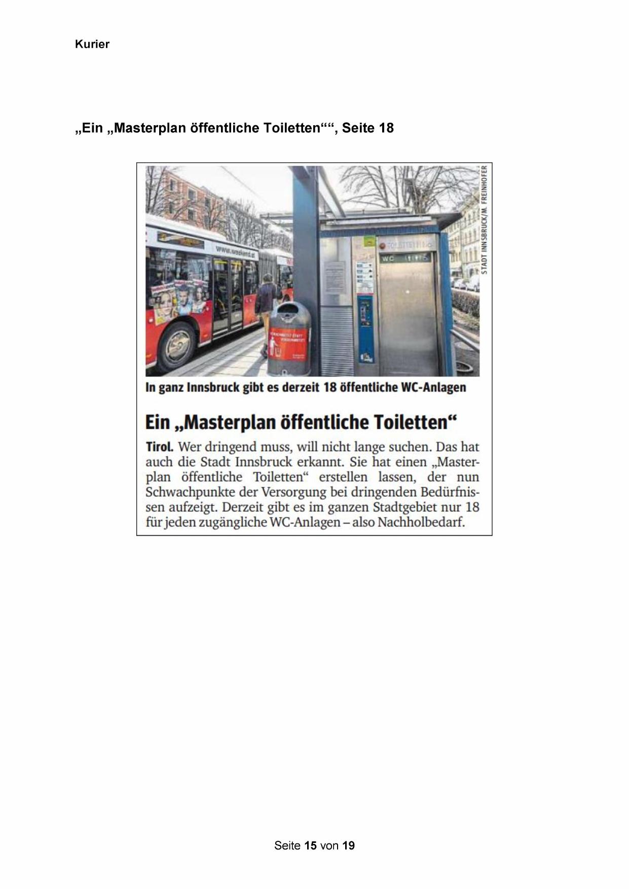 auch die Stadt Innsbruck erkannt. Sie hat einen „Masterplan Öffentliche Toiletten“ erstellen lassen, der nun