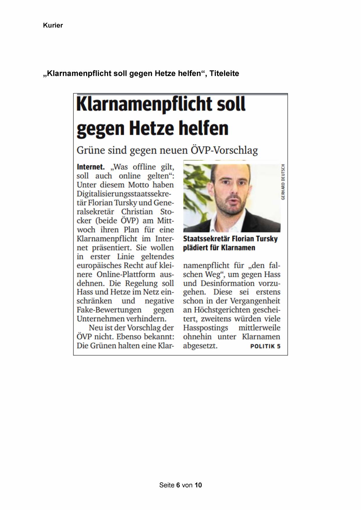 „Klarnamenpflicht soll gegen Hetze helfen“, Titeleite
