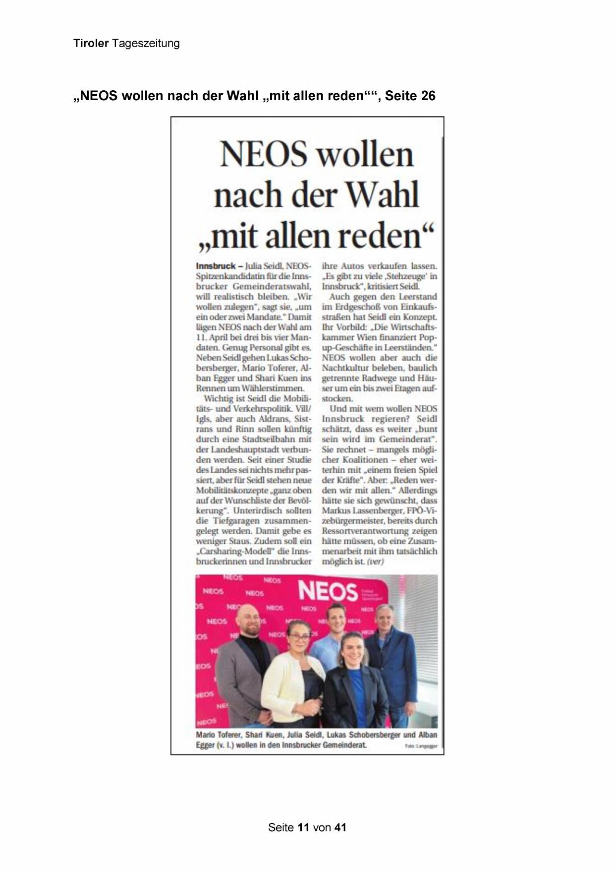 „NEOS wollen nach der Wahl „mit allen reden“*“, Seite 26