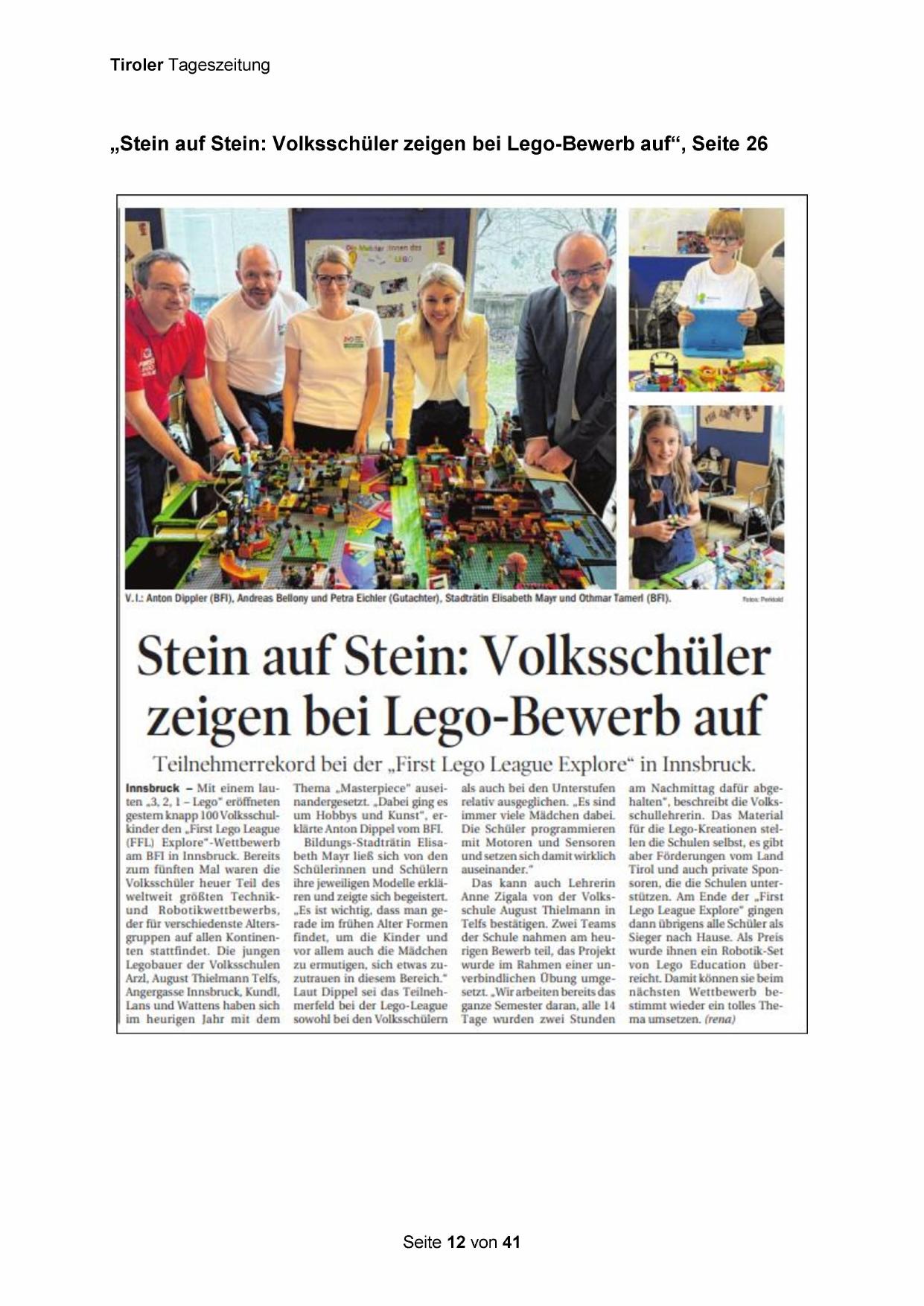 „Stein auf Stein: Volksschüler zeigen bei Lego-Bewerb auf“, Seite 26