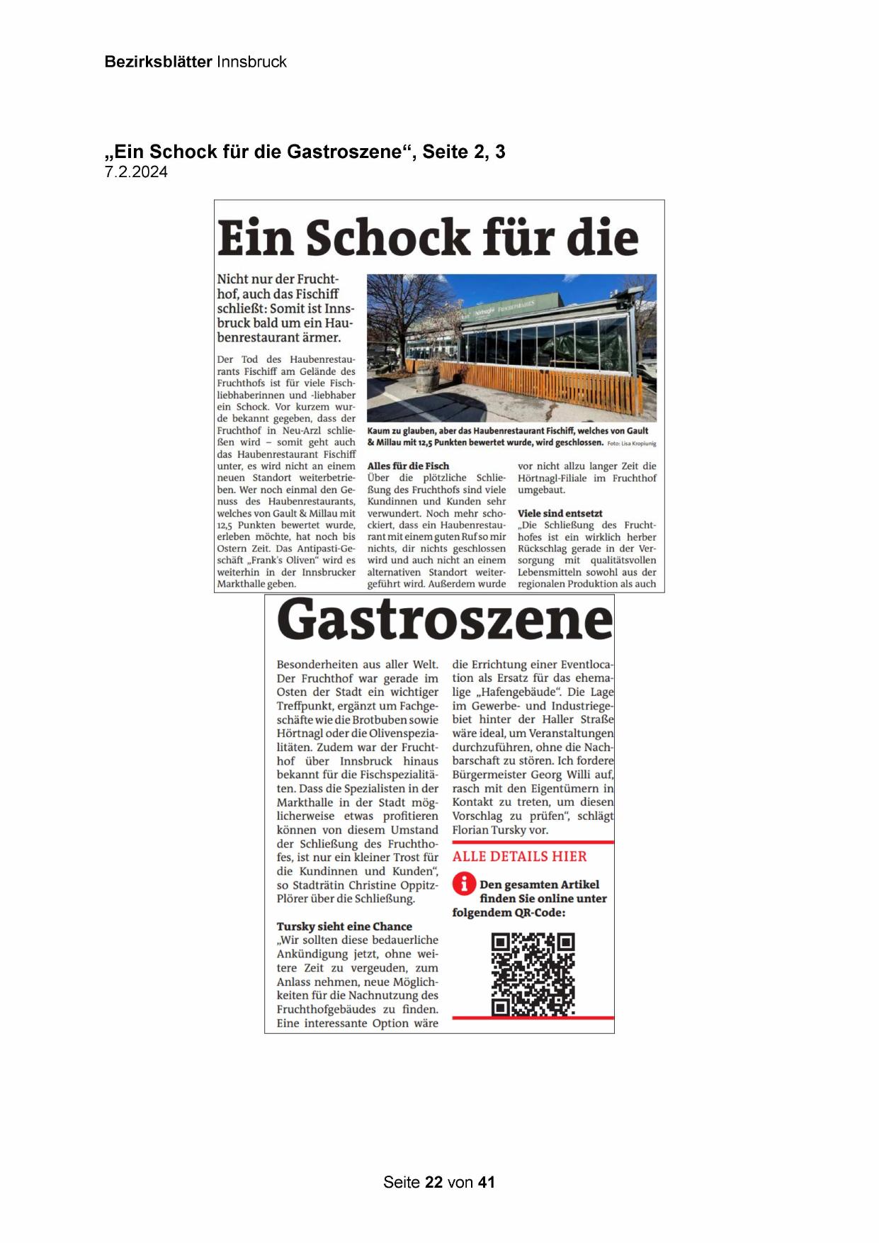 schließt: Somit ist Innsbruck bald um ein Haubenrestaurant ärmer.