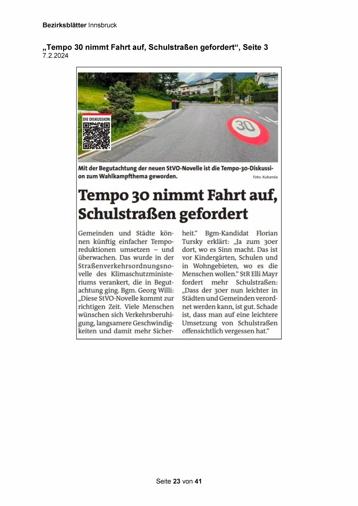 „Tempo 30 nimmt Fahrt auf, Schulstraßen gefordert“, Seite 3