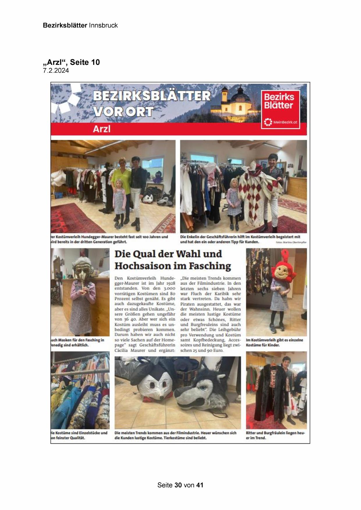 r Kostümverfteih Hundegger-Maurer besteht fast seit 100 Jahren und