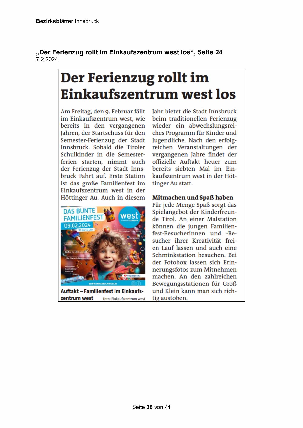 „Der Ferienzug rollt im Einkaufszentrum west los“, Seite 24