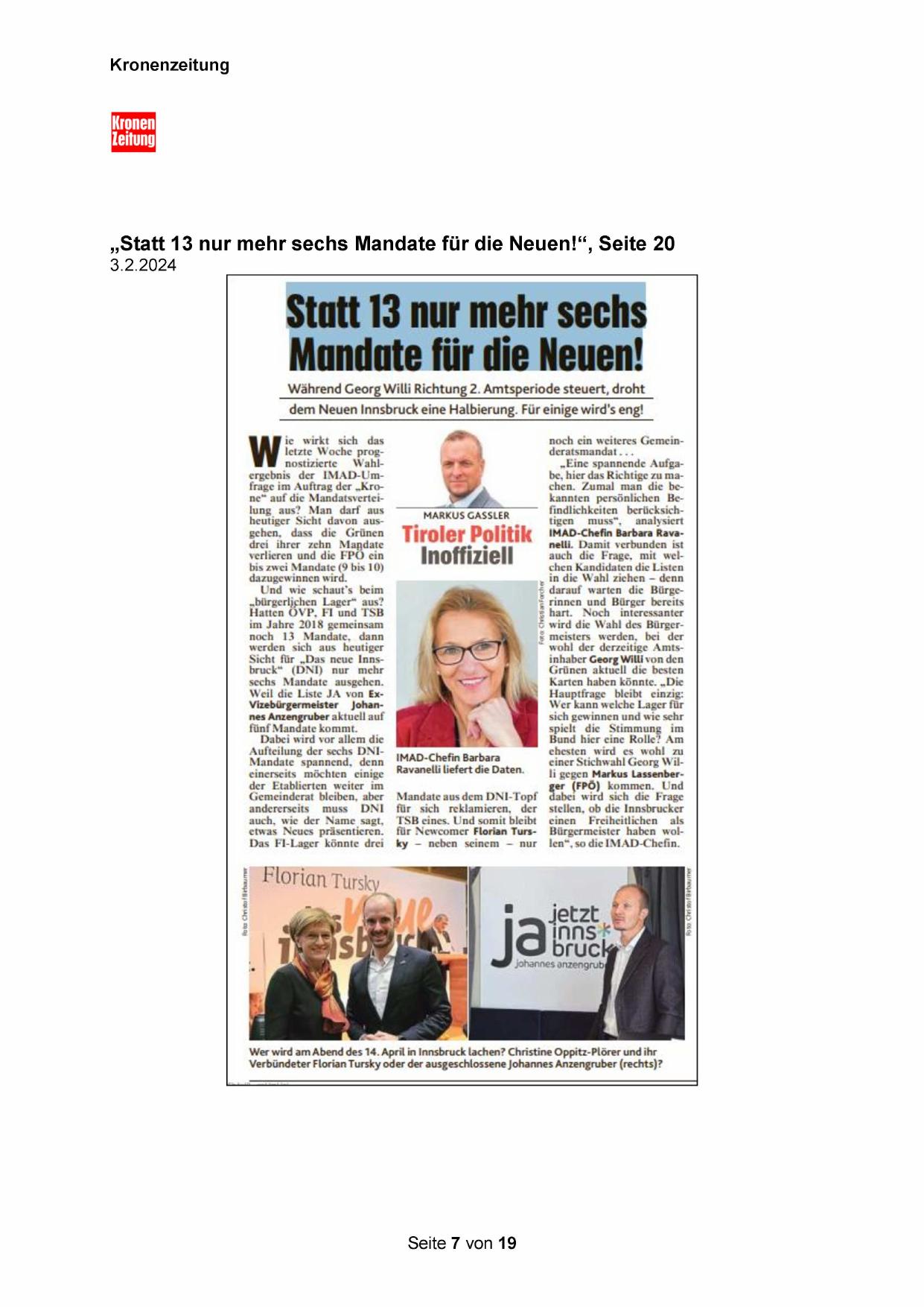 dem Neuen Innsbruck eine Halbierung. Für einige wird"s eng!