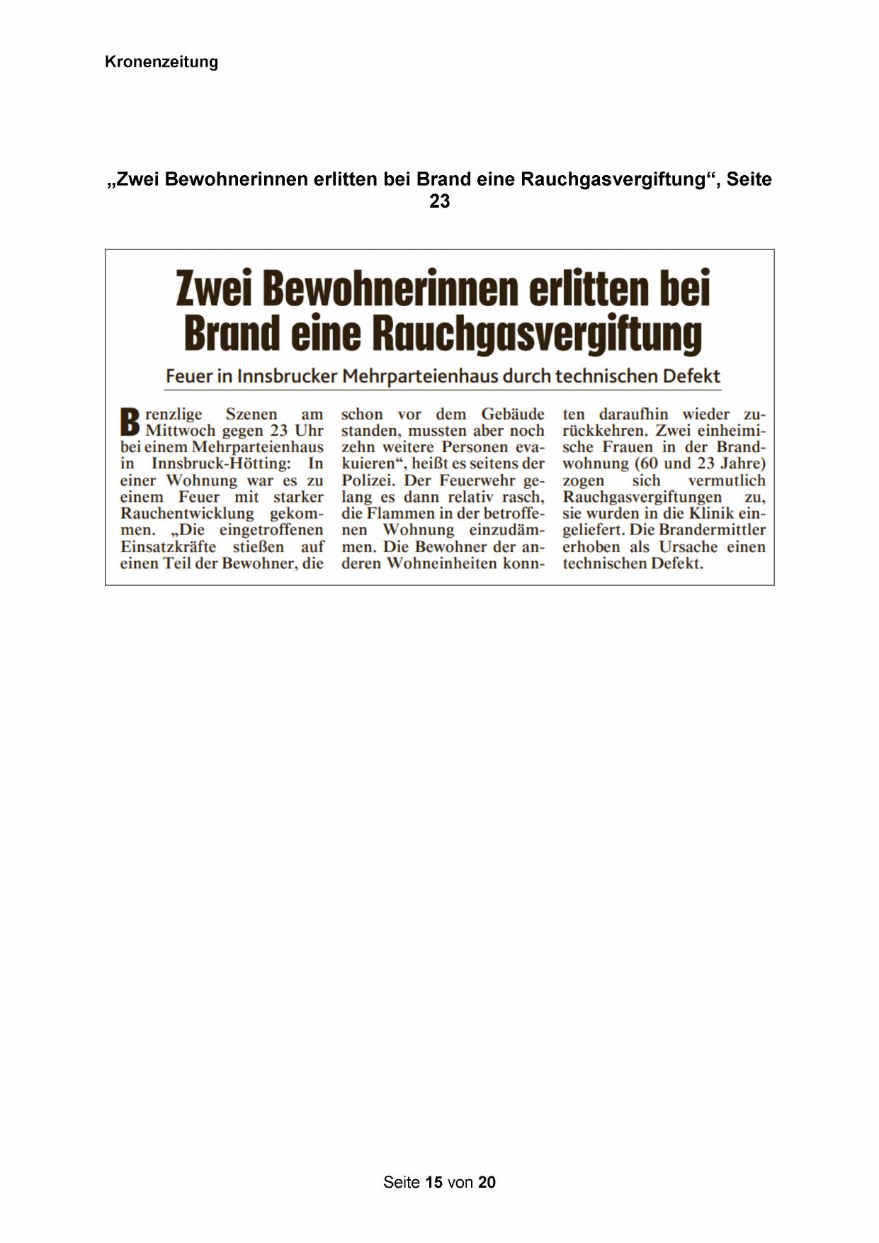 „Zwei Bewohnerinnen erlitten bei Brand eine Rauchgasvergiftung“, Seite