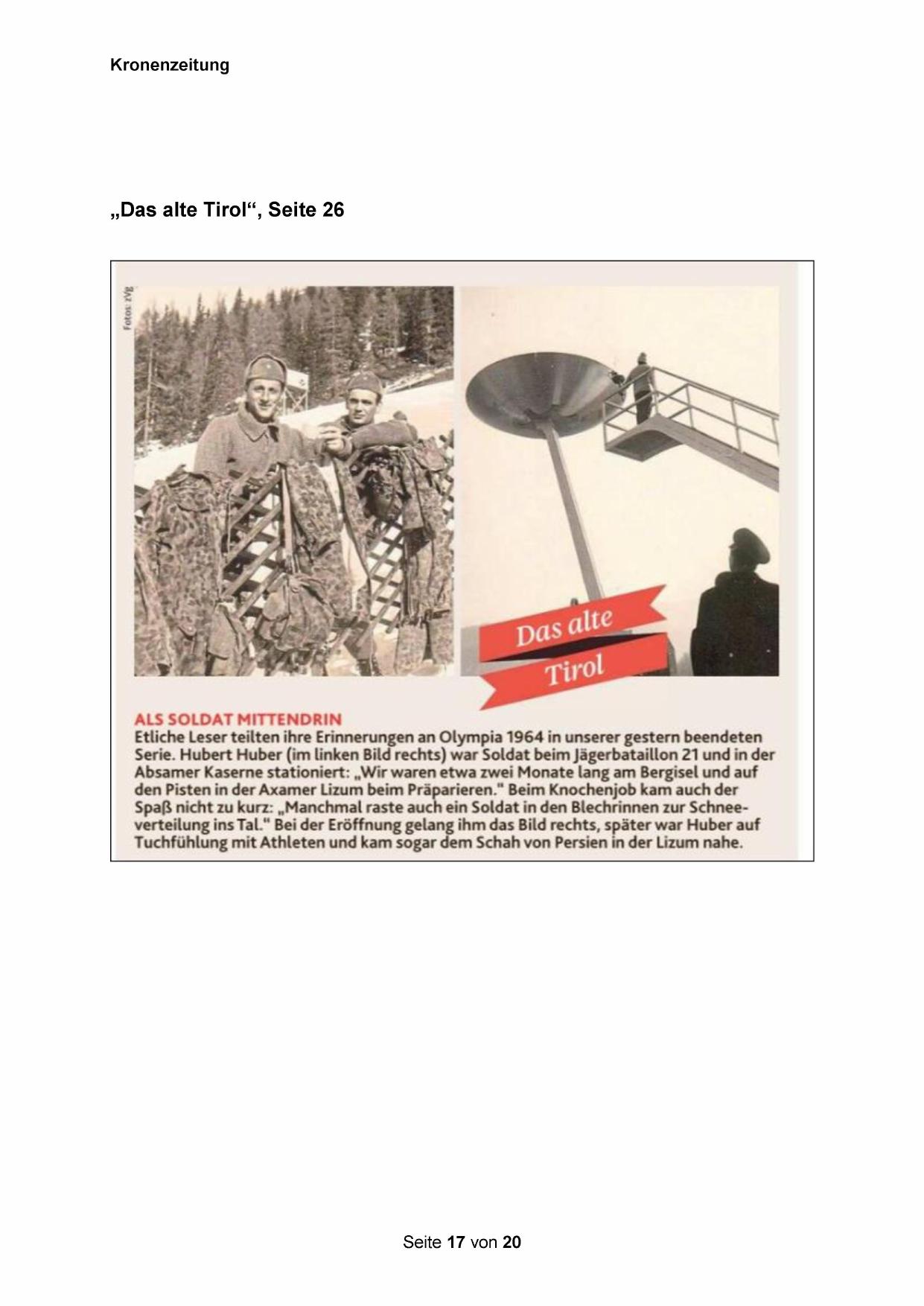 Tuchfühlung mit Athleten und kam sogar Schah von Persien in der Lizum nahe.