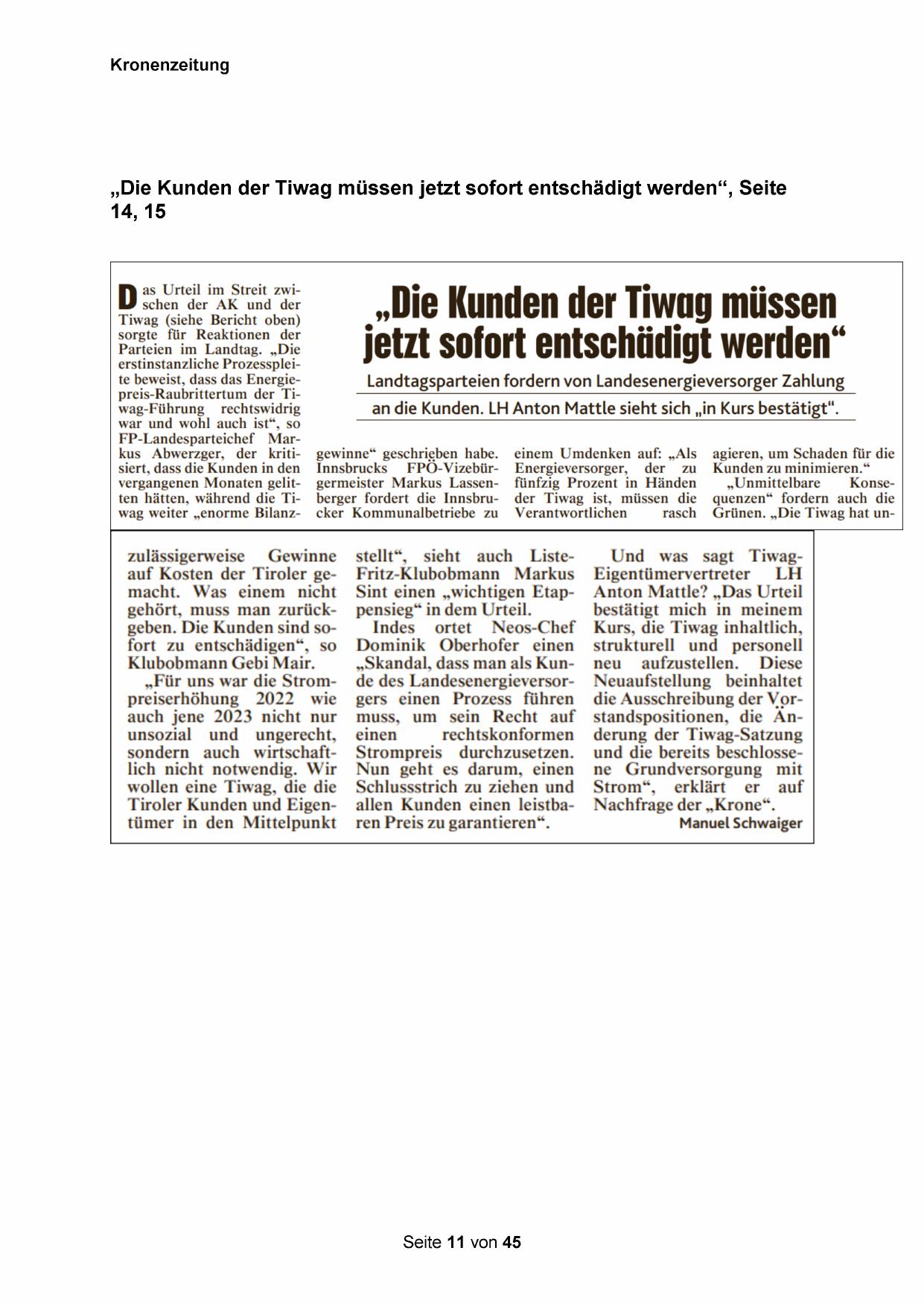 „Die Kunden der Tiwag müssen jetzt sofort entschädigt werden“, Seite