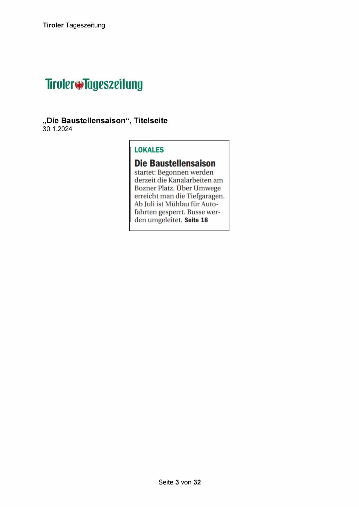 Ab Juli ist Mühlau für Autofahrten gesperrt. Busse werden umgeleitet. Seite 18