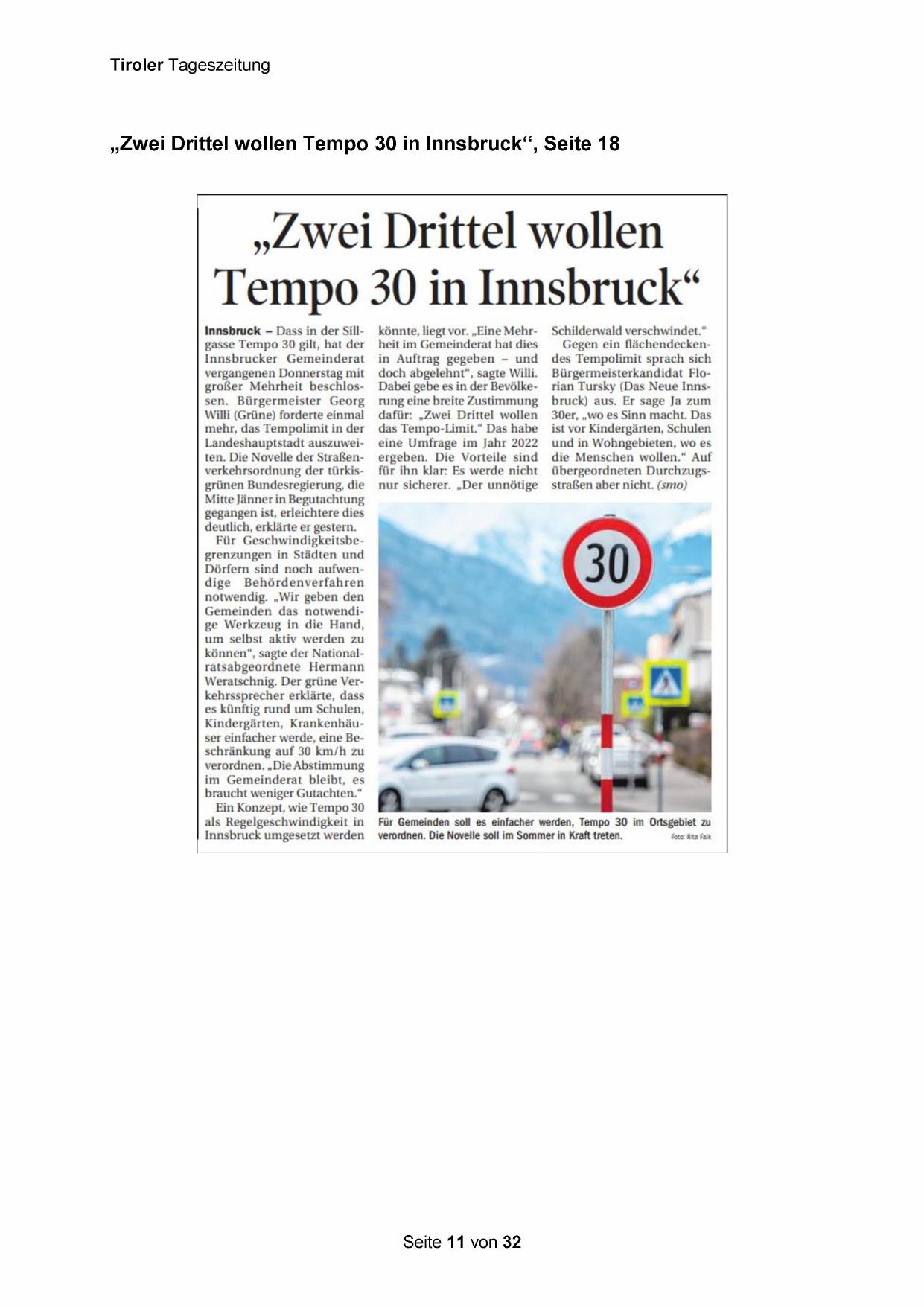 „Zwei Drittel wollen Tempo 30 in Innsbruck“, Seite 18