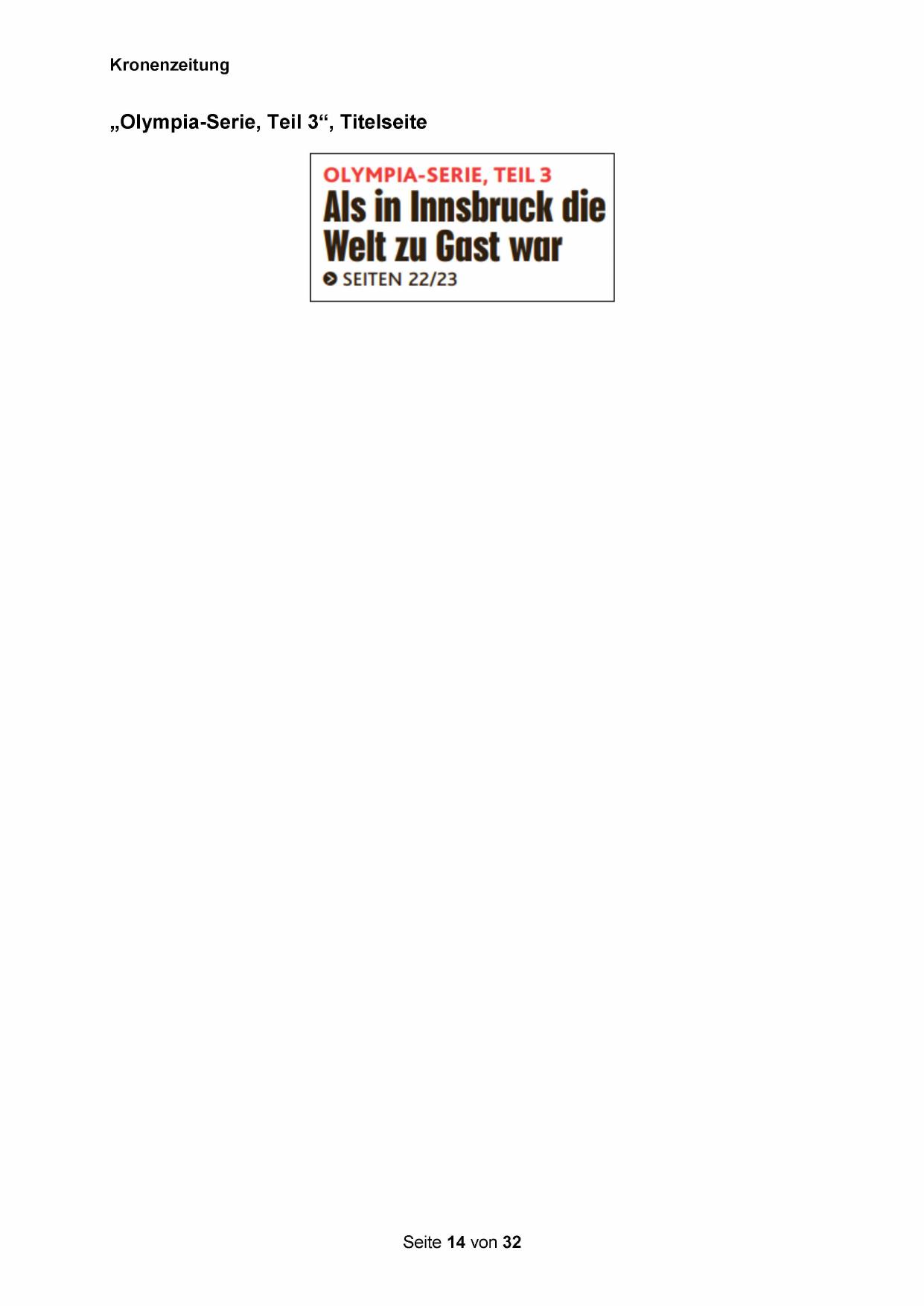 „Olympia-Serie, Teil 3“, Titelseite