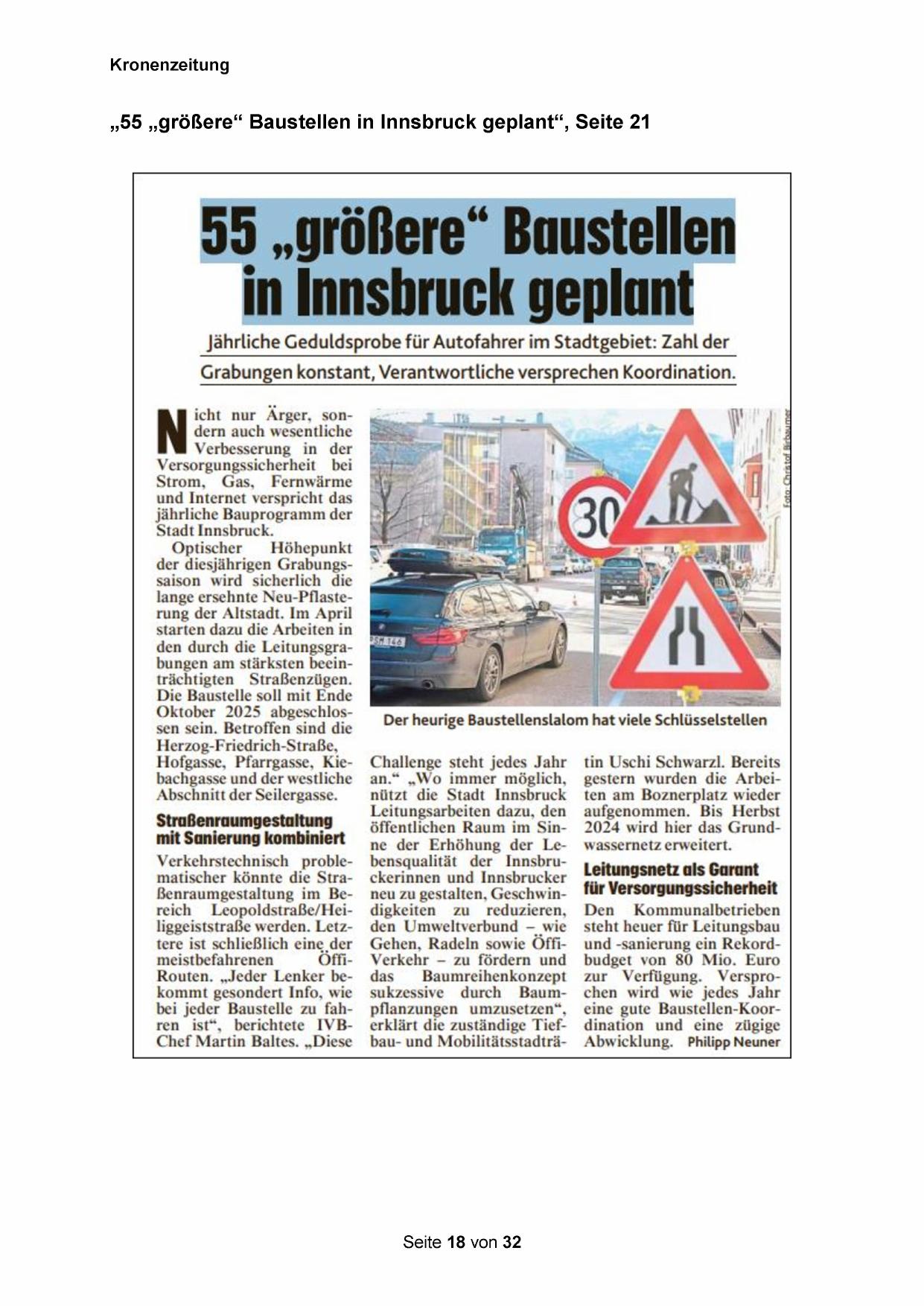 „55 „größere‘“ Baustellen in Innsbruck geplant“, Seite 21