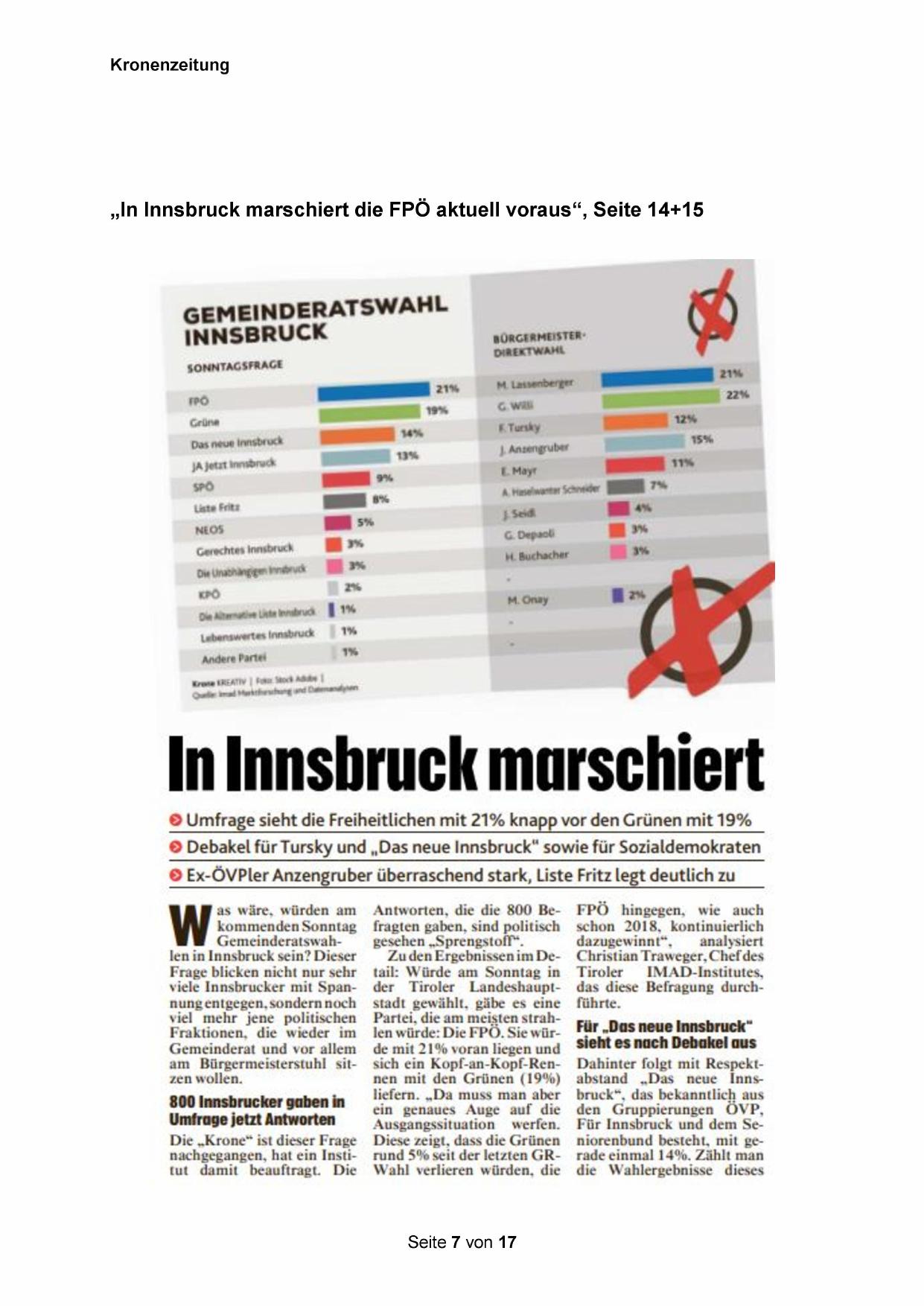 „In Innsbruck marschiert die FPÖ aktuell voraus“, Seite 14+15