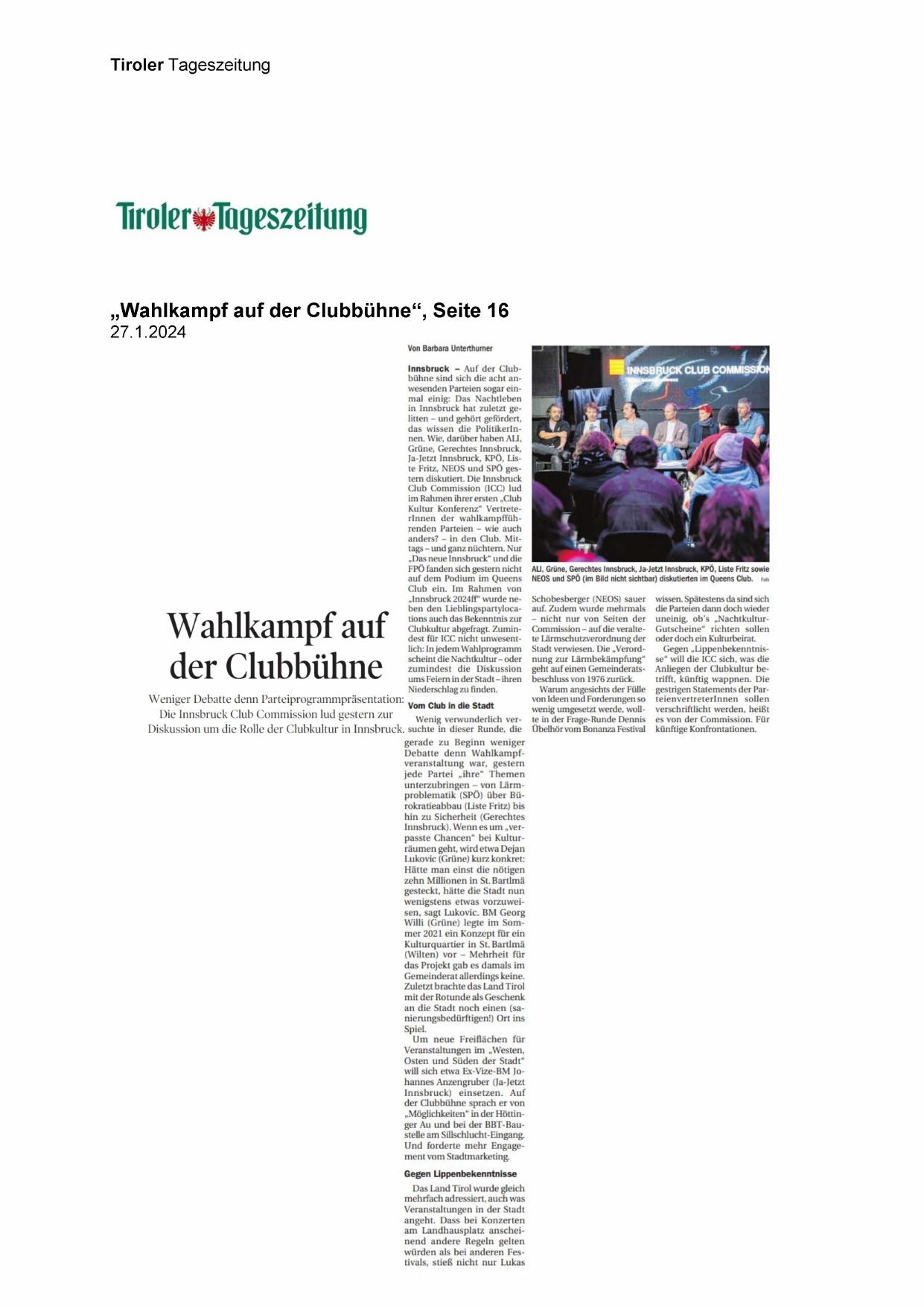 Innsbruck - Auf der Clubbühne sind sich die acht anwesenden Parteien sogar einmal einig: Das Nachtleben