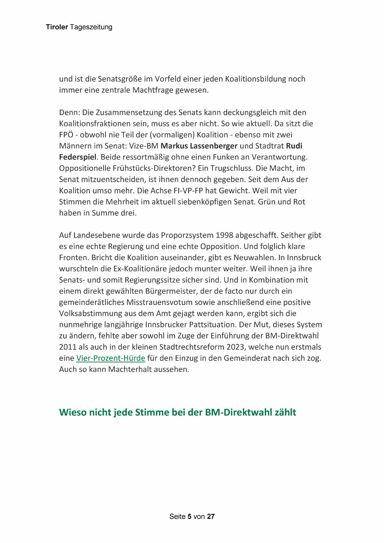 nunmehrige langjährige Innsbrucker Pattsituation. Der Mut, dieses System