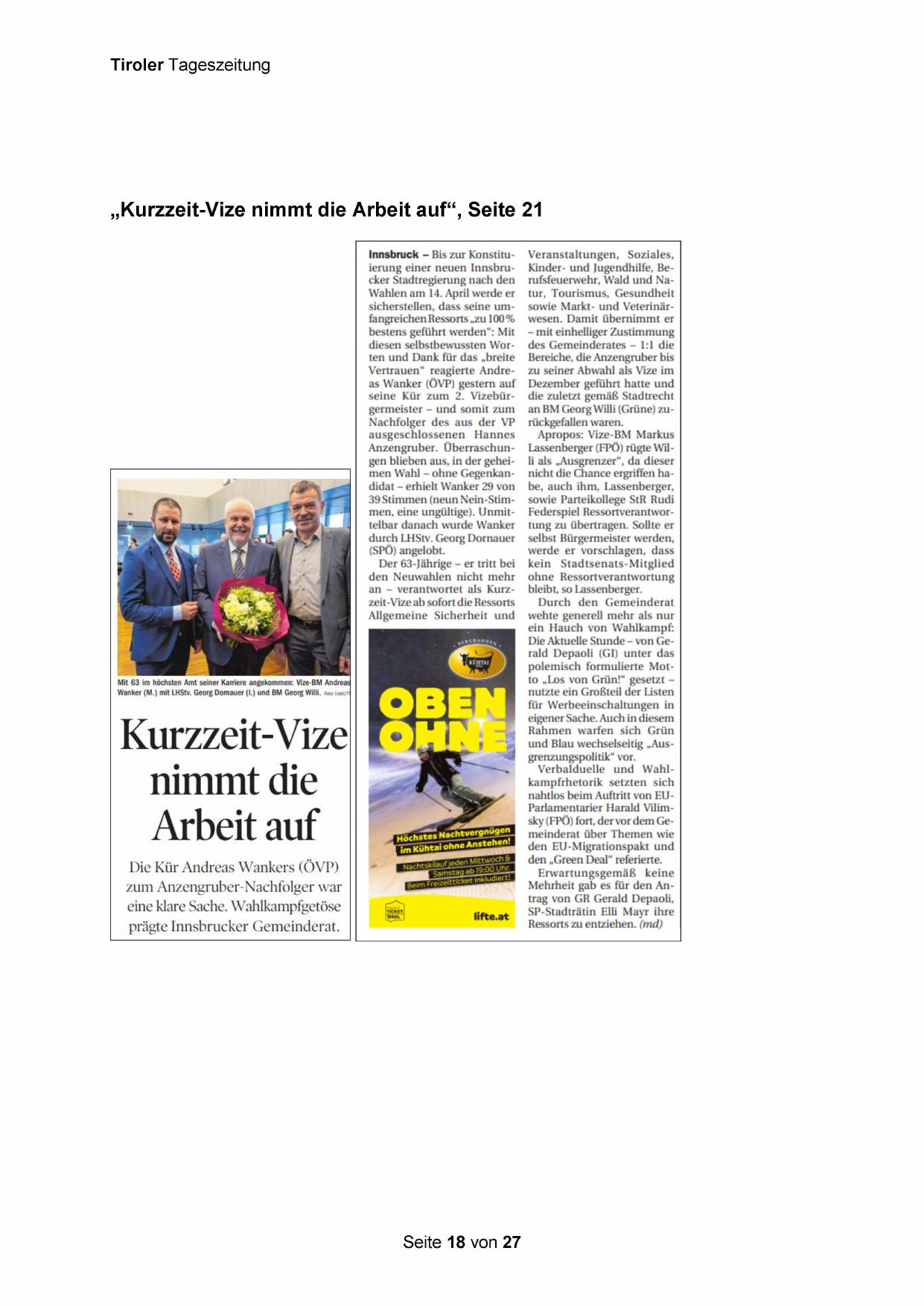 Innsbruck — Bis zur Konstitujerung einer neuen Innsbrucker Stadtregierung nach den