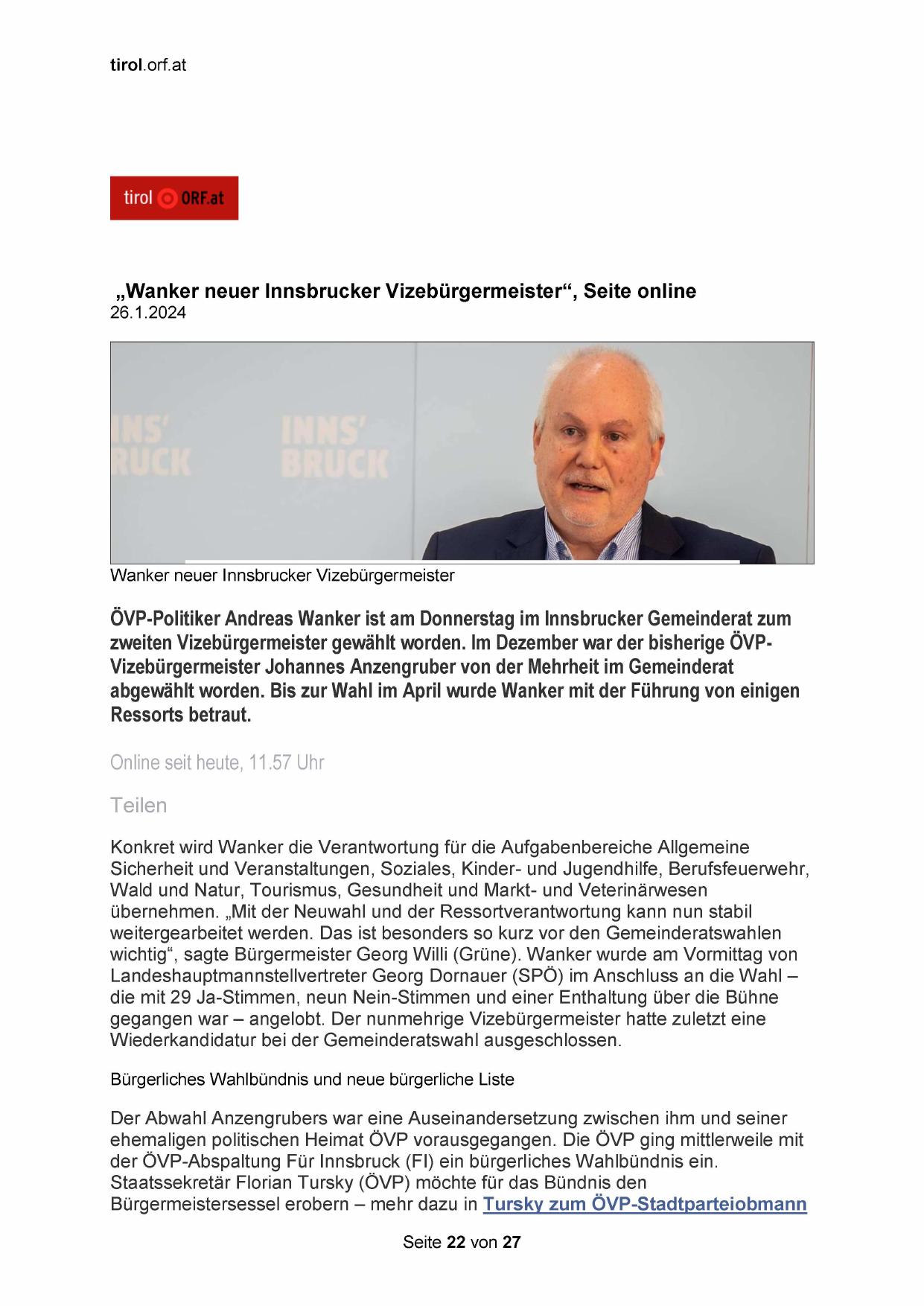 „Wanker neuer Innsbrucker Vizebürgermeister“, Seite online