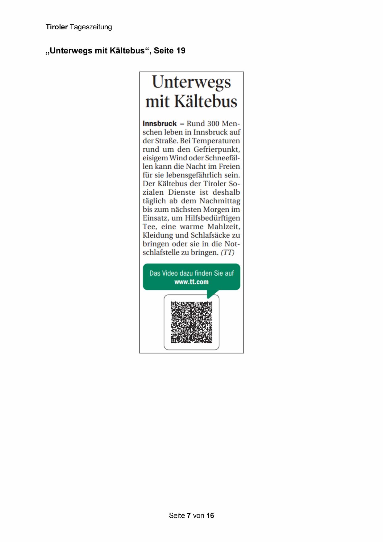 Der Kältebus der Tiroler Sozialen Dienste ist deshalb