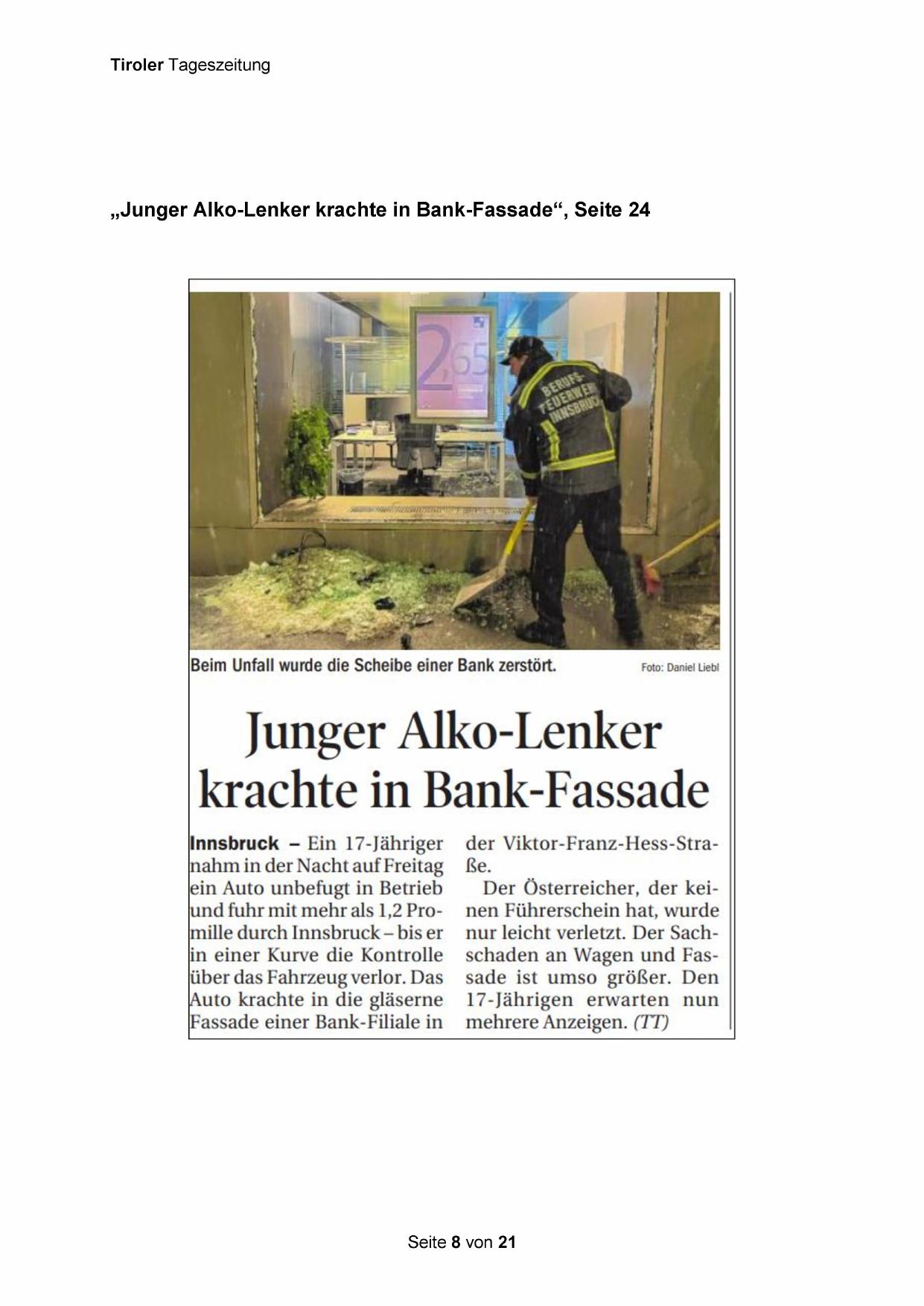 „Junger Alko-Lenker krachte in Bank-Fassade“, Seite 24