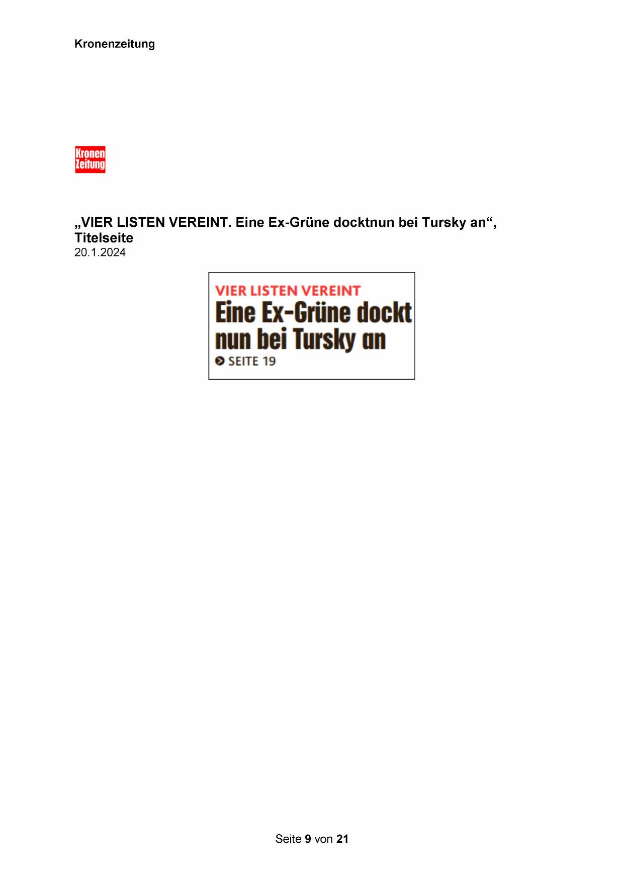 „VIER LISTEN VEREINT. Eine Ex-Grüne docktnun bei Tursky an“,