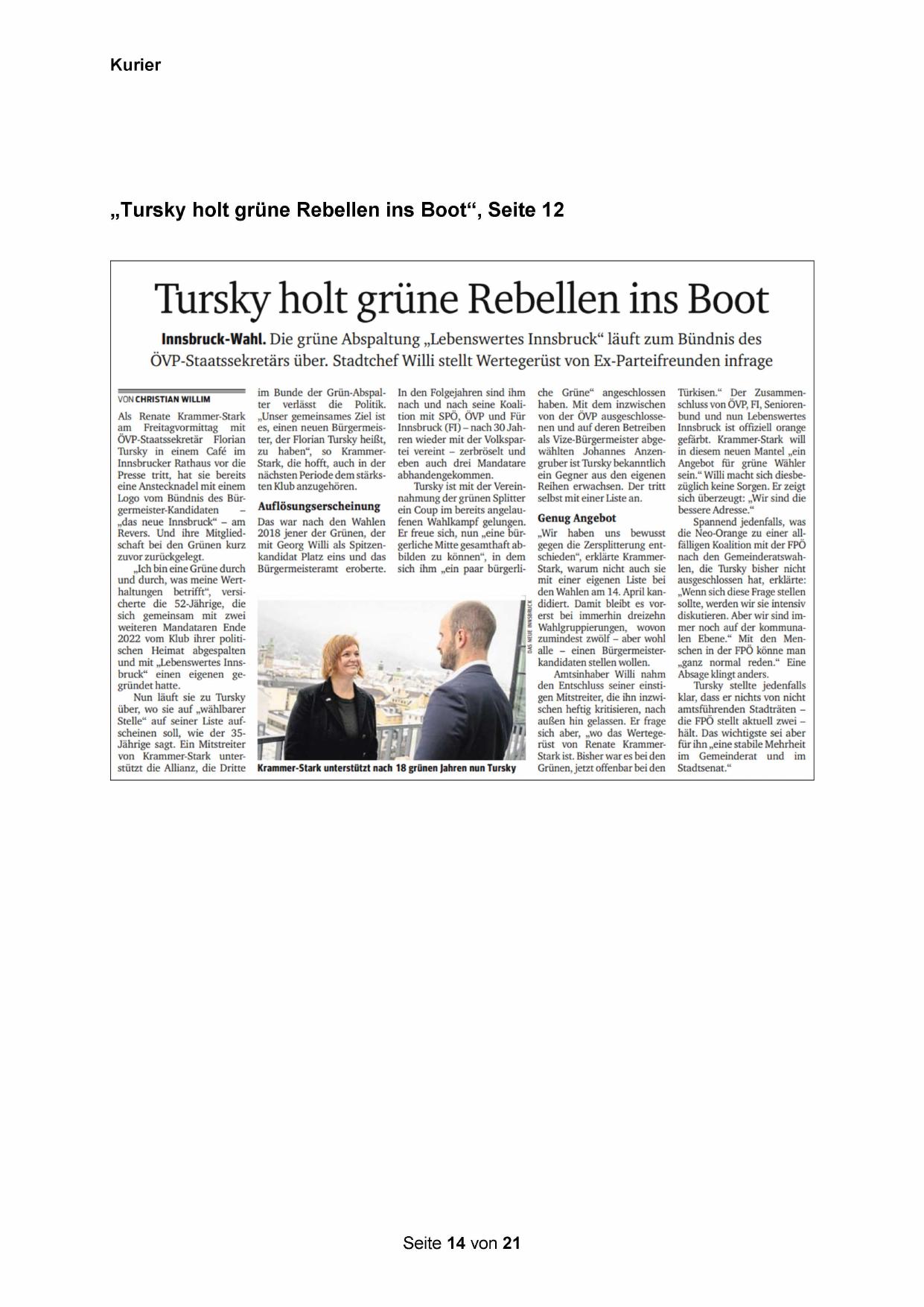 „Tursky holt grüne Rebellen ins Boot“, Seite 12