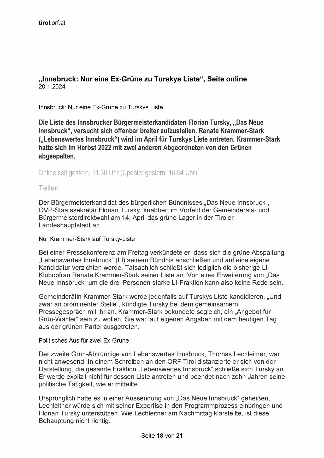 „Innsbruck: Nur eine Ex-Grüne zu Turskys Liste“, Seite online