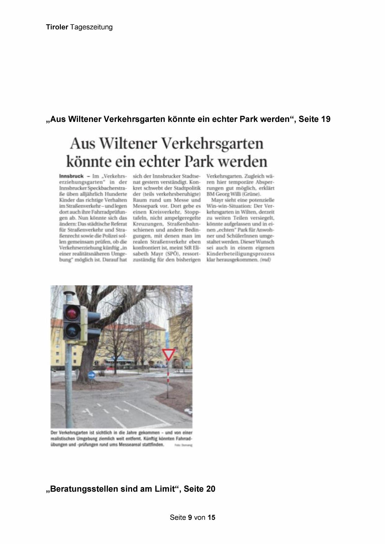 Innsbruck — Im „Verkehrs- sich der Innsbrucker Stadtse- Verkehrsgarten. Zugleich wäerziehungsgarten” in der nat gestern verständigt. Kon- ren hier temporäre Absper-