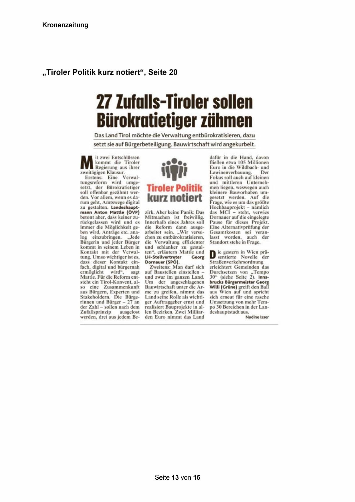 Maltltle. Für die Reform entsteht ein Tirol-Konvent, also eine Zusammenkunft