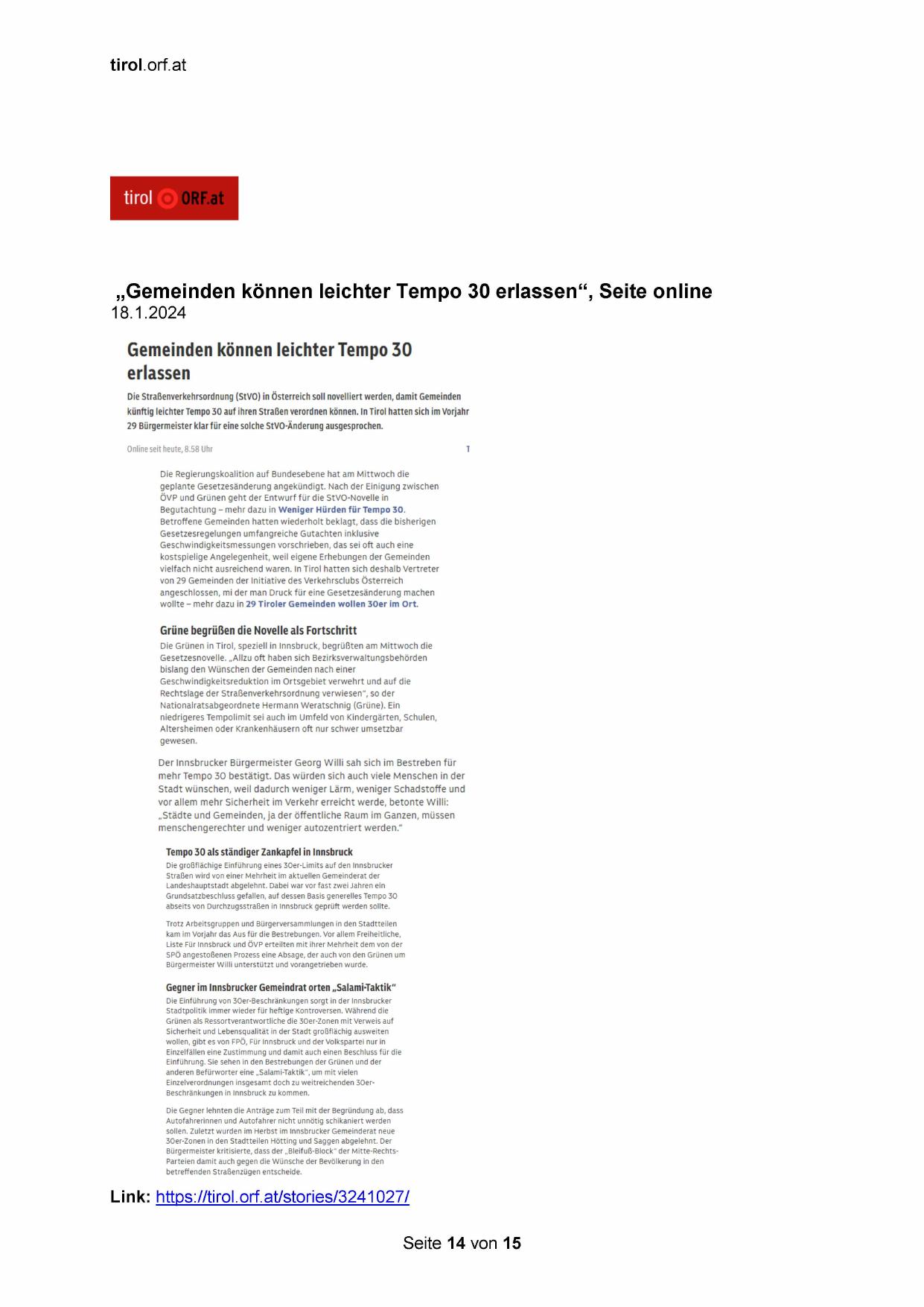 wollte - mehr dazu in 29 Tiroler Gemeinden wollen 30er im Ort.