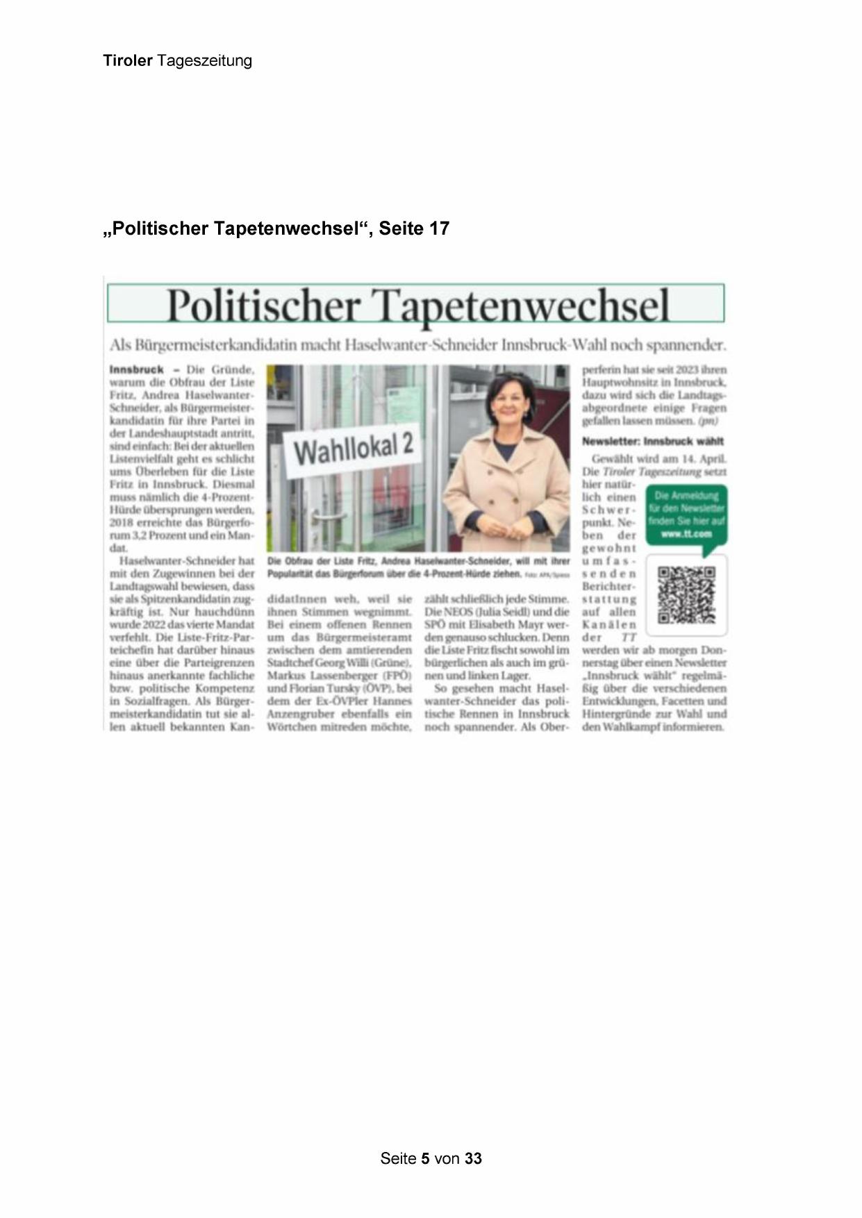So gesechen macht Haselwanter-Schneider das politische Rennen in Innsbruck