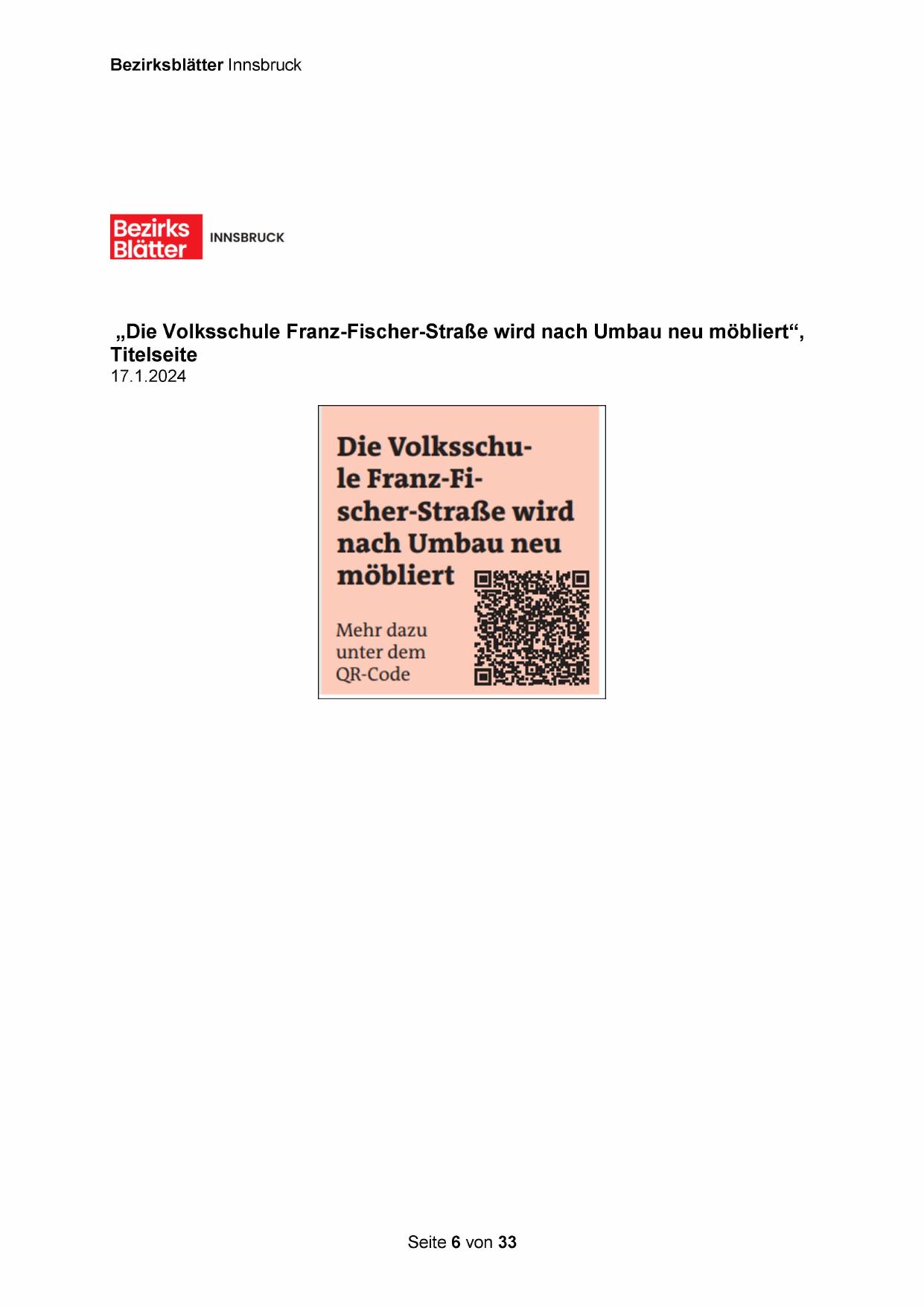 „Die Volksschule Franz-Fischer-Straße wird nach Umbau neu möbliert‘“,