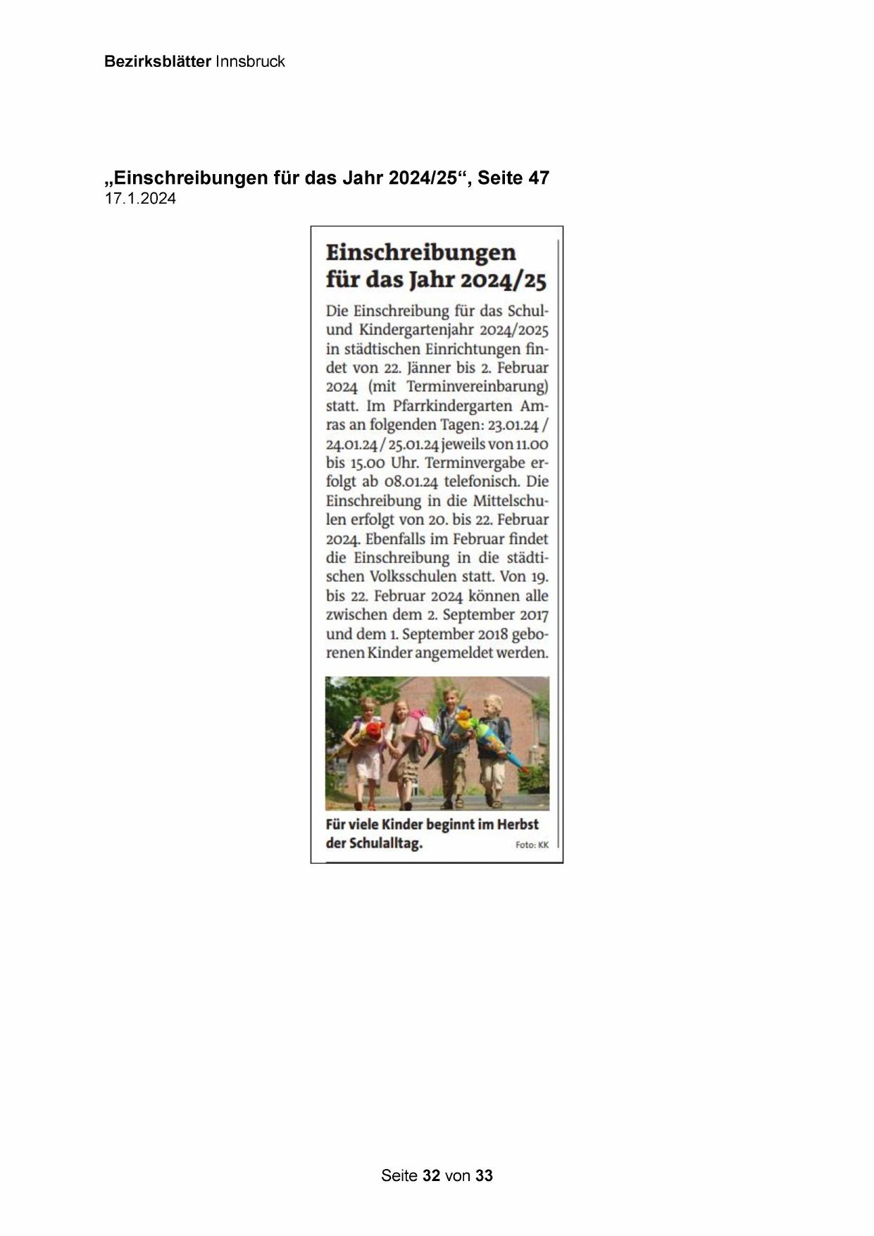statt. Im Pfarrkindergarten Amras an folgenden Tagen: 23.01.24 /
