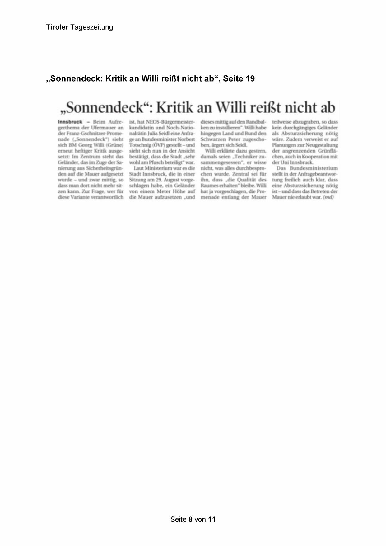 „Sonnendeck: Kritik an Willi reißt nicht ab“, Seite 19