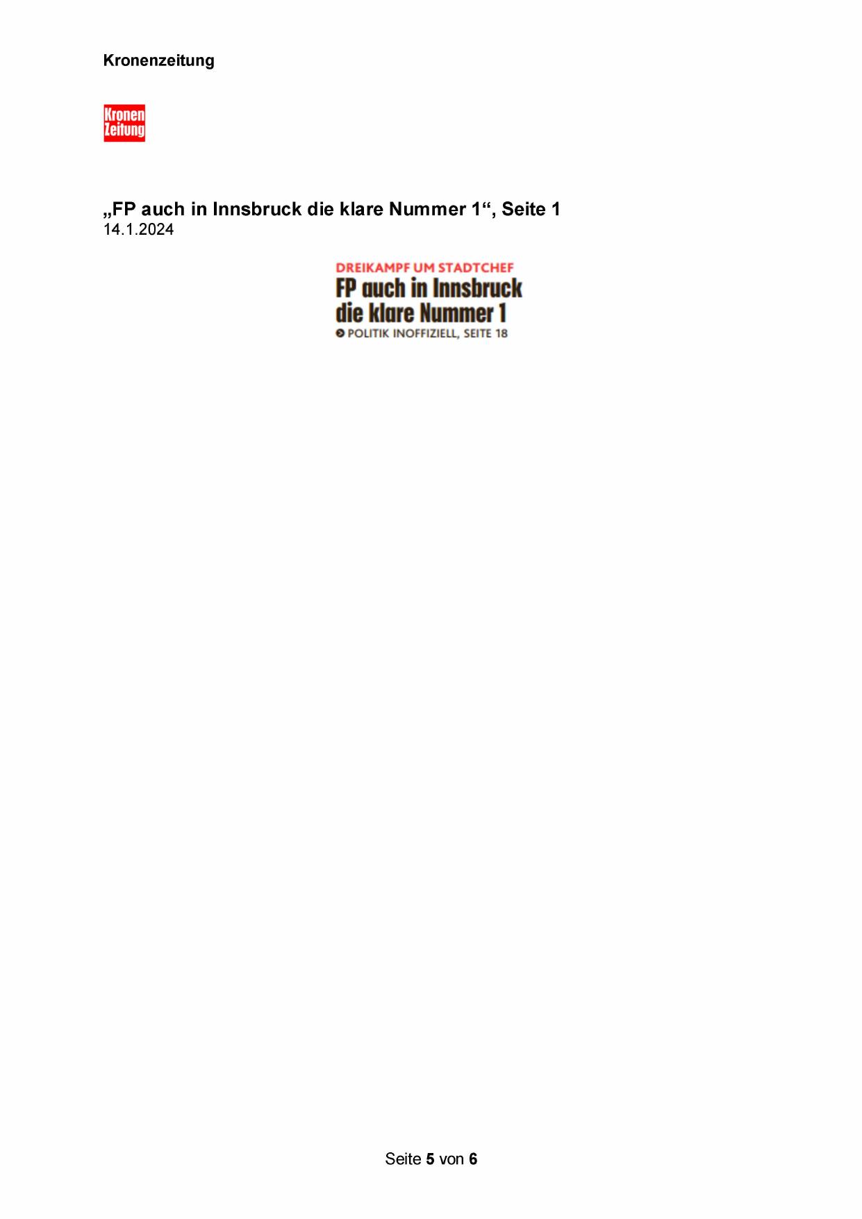 „FP auch in Innsbruck die klare Nummer 1“, Seite 1