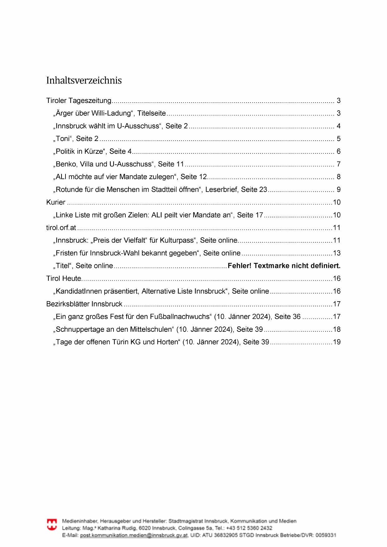 Medieninhaber, Herausgeber und Hersteller: Stadtmagistrat Innsbruck, Kommunikation und Medien