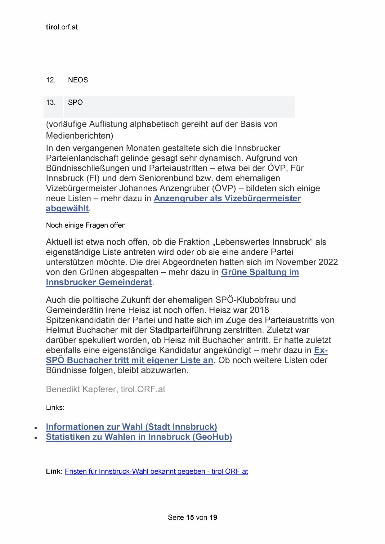 Link: Fristen für Innsbruck-Wahl bekannt gegeben - tirol.ORF.at